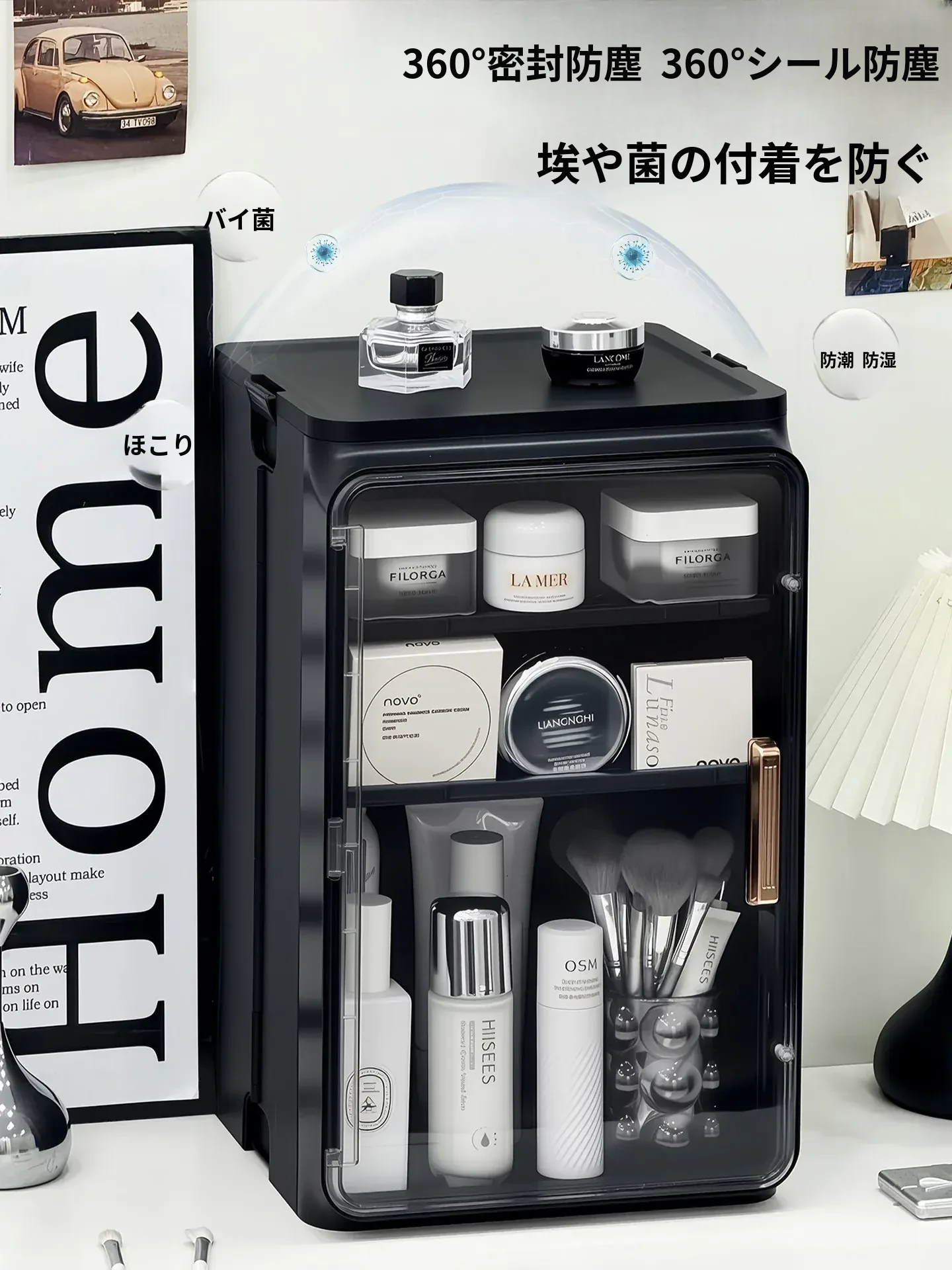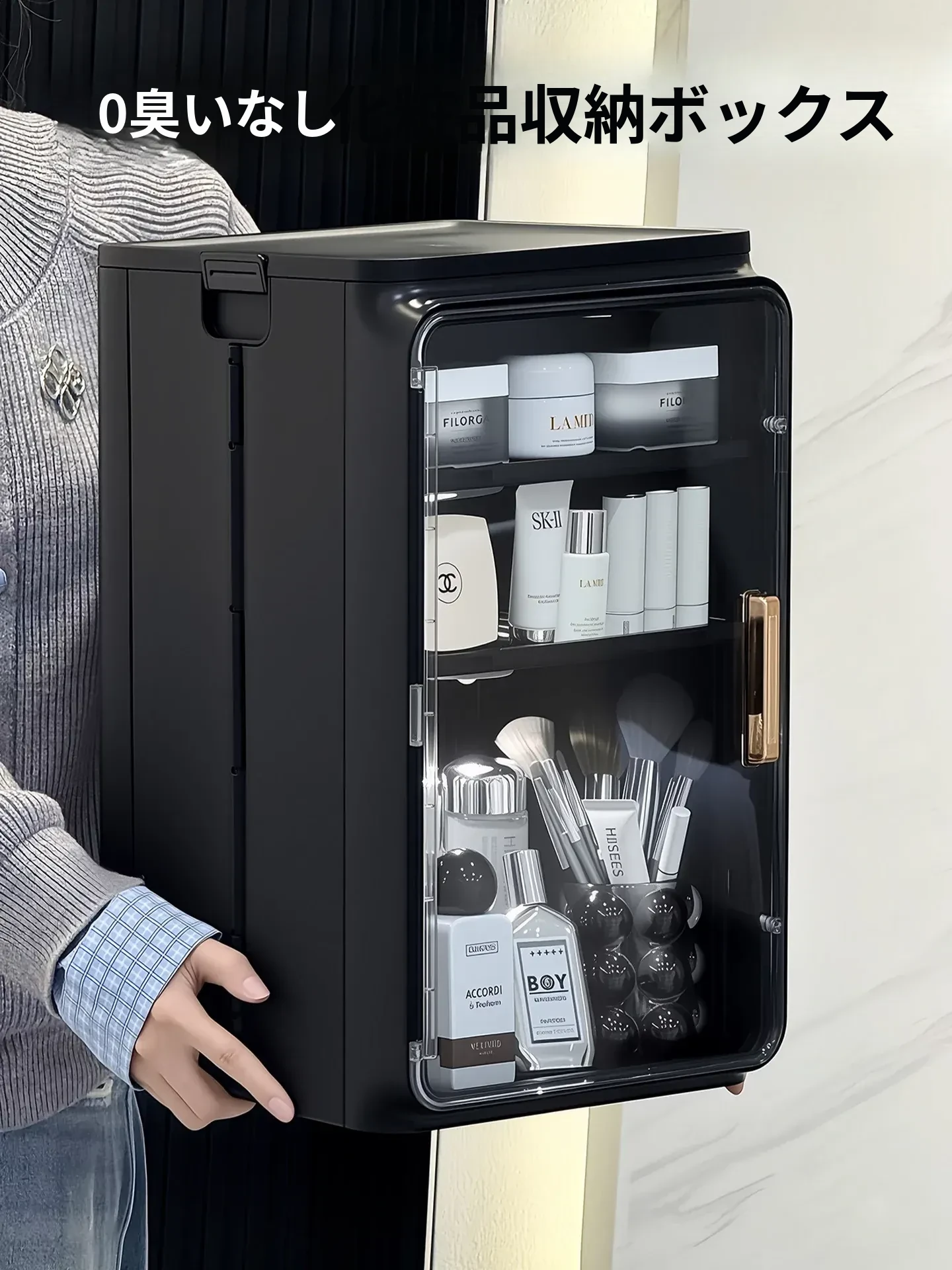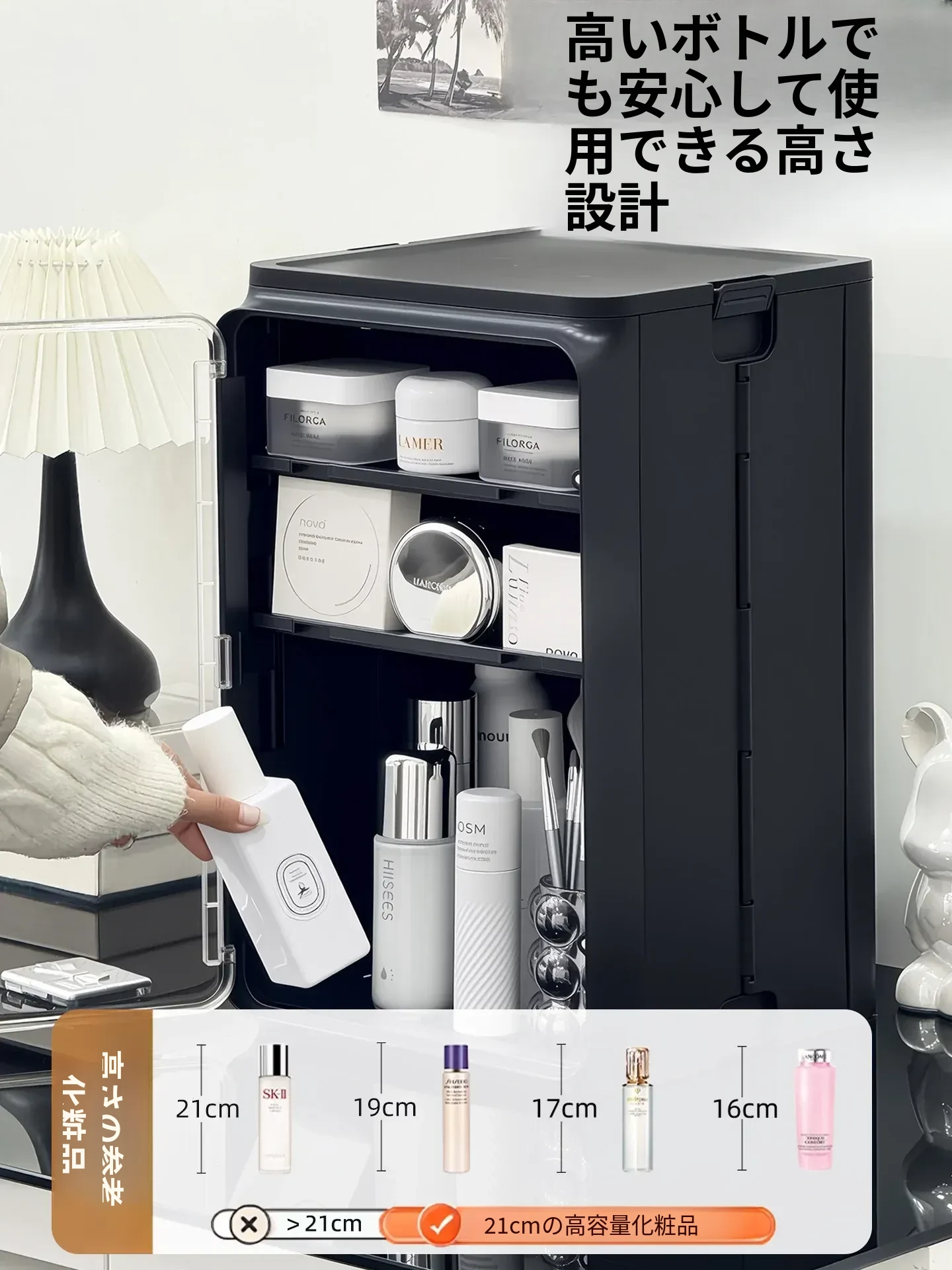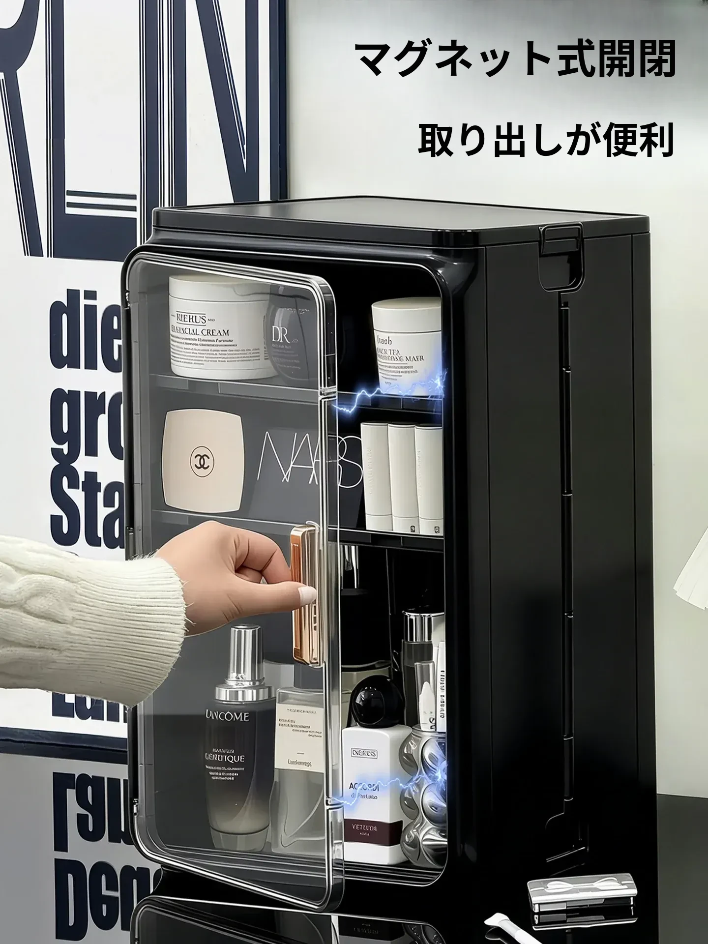 高級感溢れる化粧品収納ボックス - 大容量のスキンケアアイテムや香水をすっきり整理!メイク台を美しく演出するおしゃれな収納ラック。