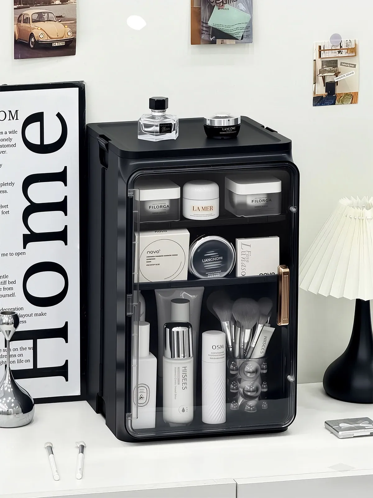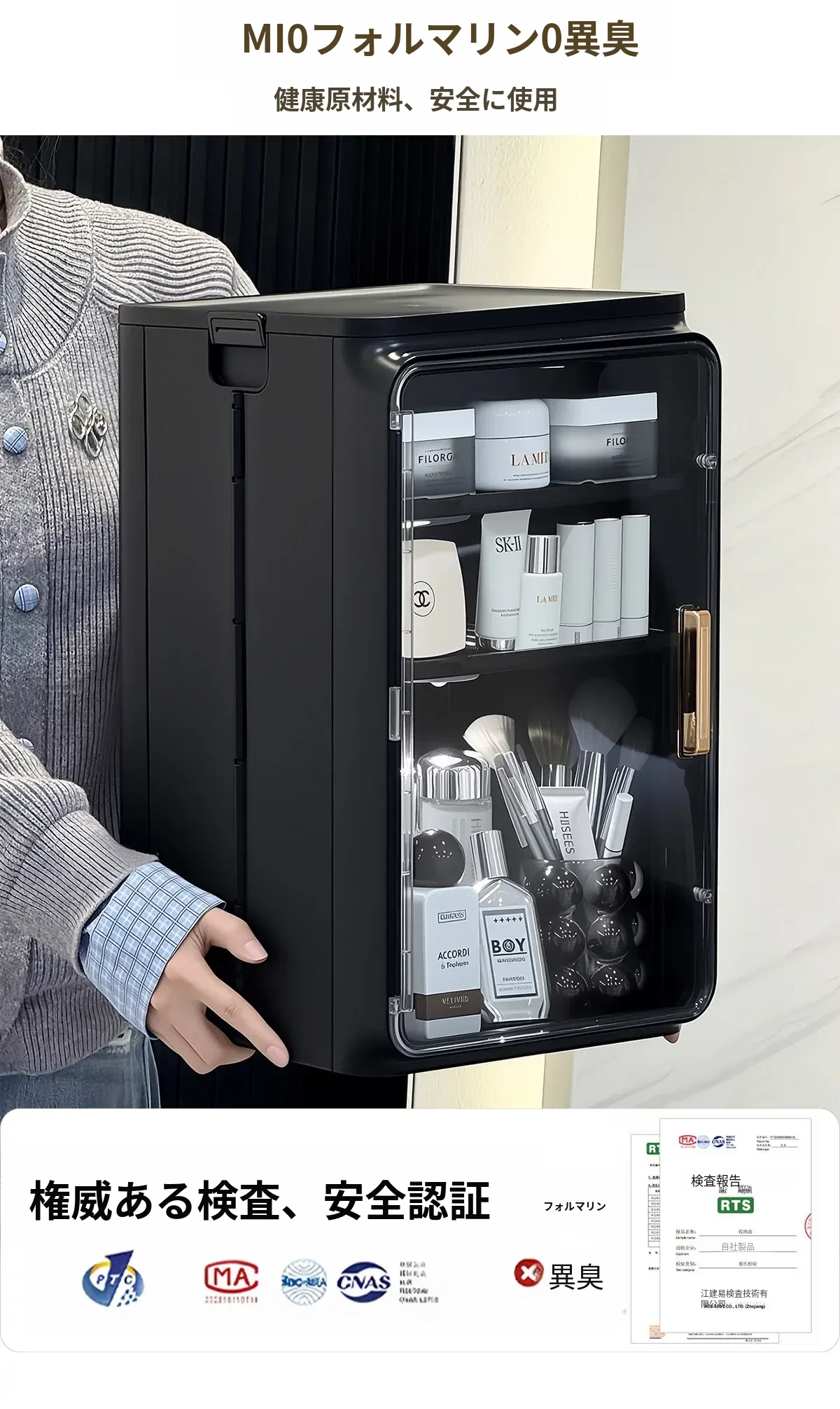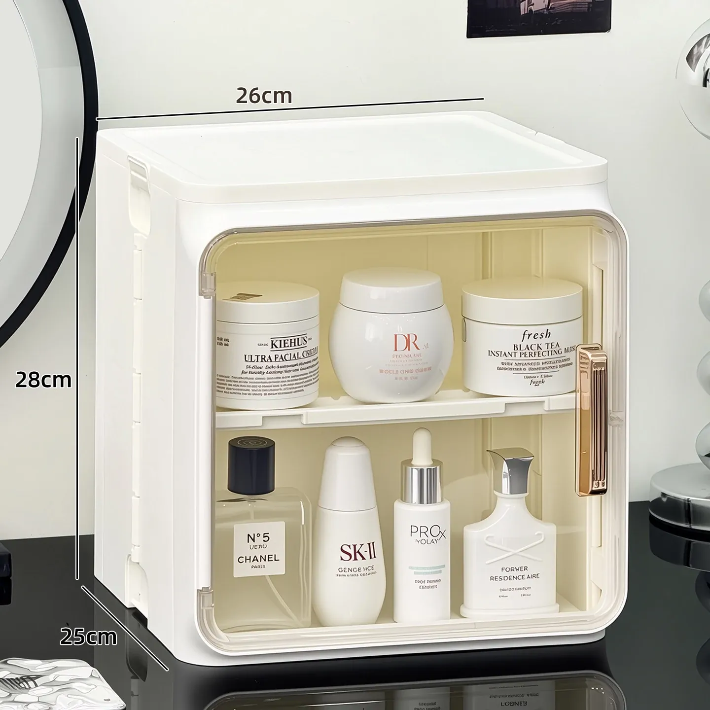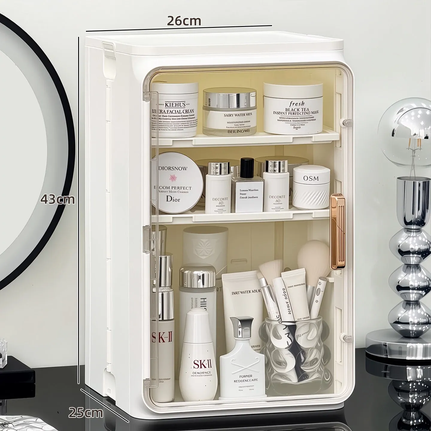 高級感溢れる化粧品収納ボックス - 大容量のスキンケアアイテムや香水をすっきり整理!メイク台を美しく演出するおしゃれな収納ラック。