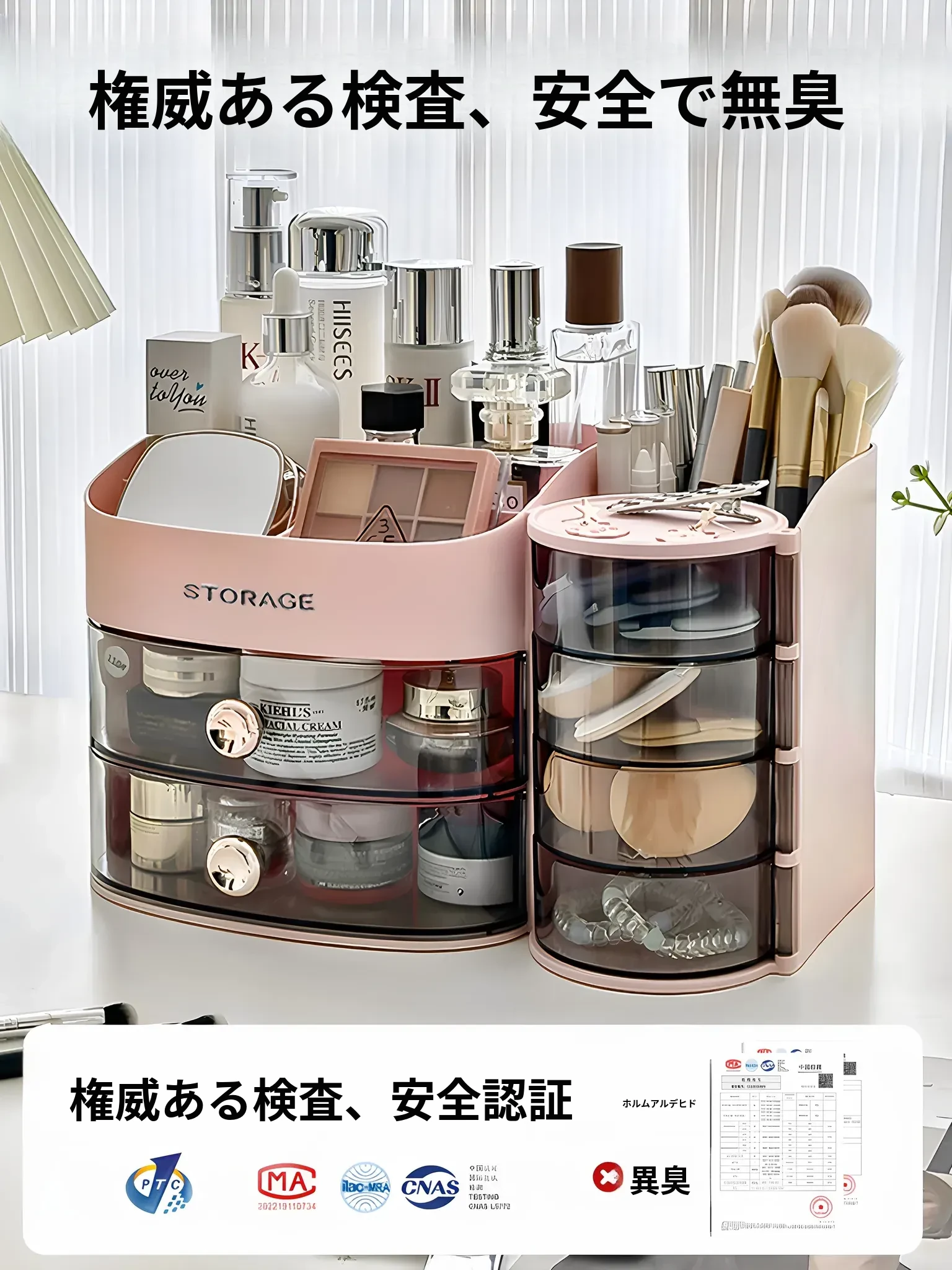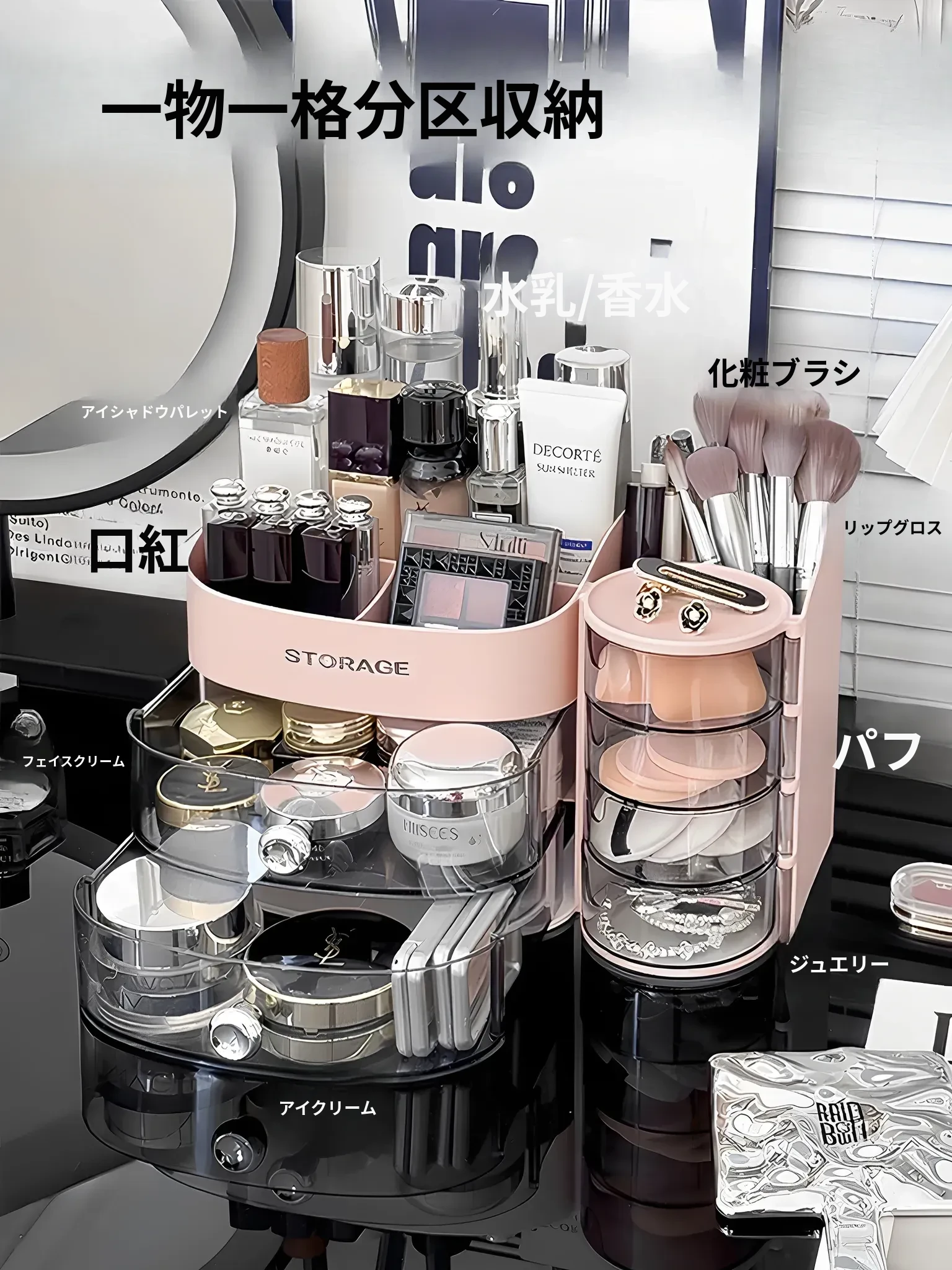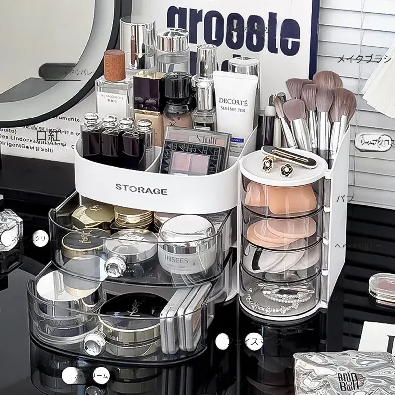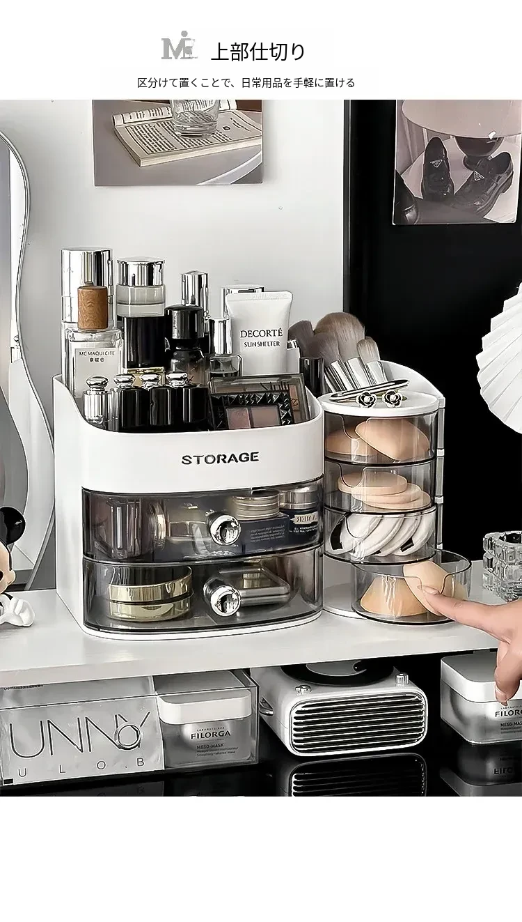高級感漂う化粧品収納ボックス - メイクアップテーブル用、大容量のスキンケア・口紅・香水整理ラック!あなたの美しさを引き立てるスタイリッシュなアイテム!