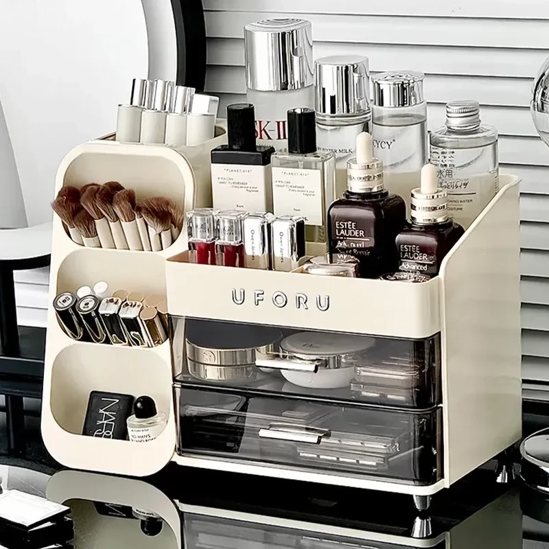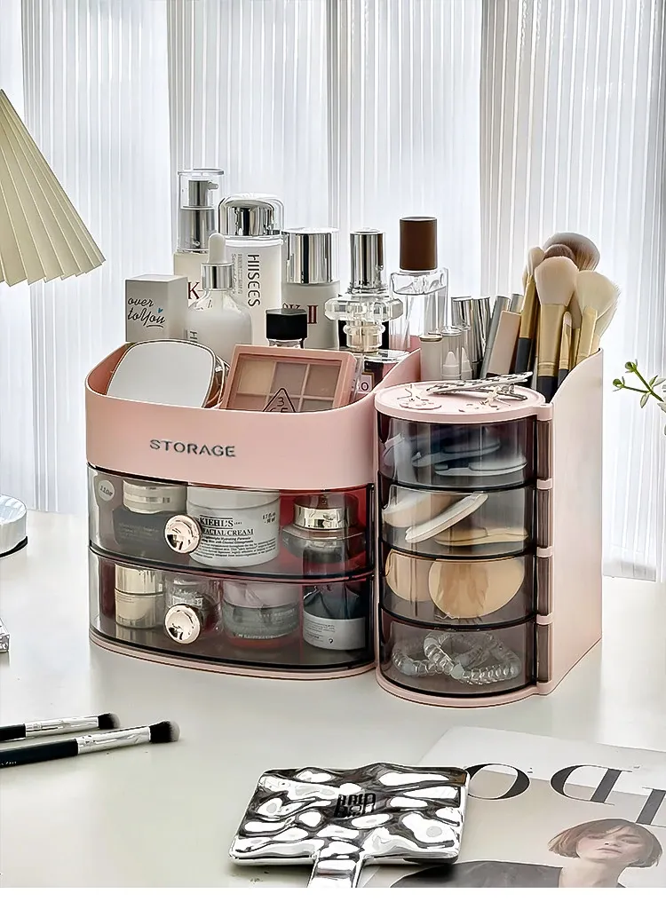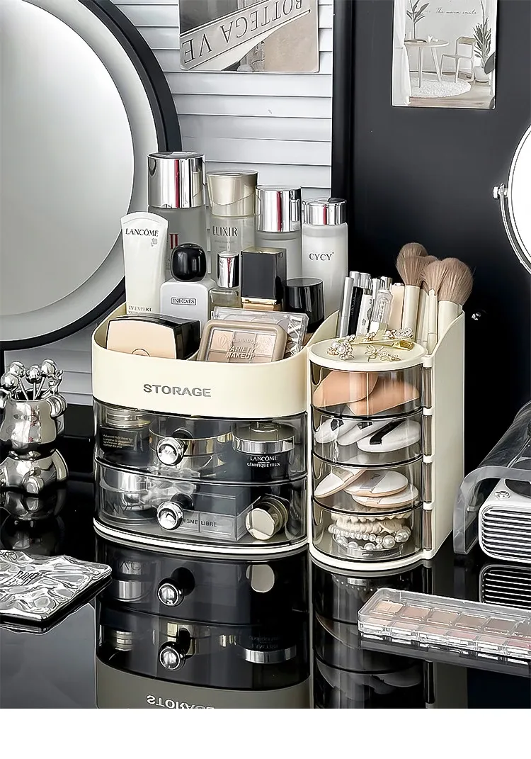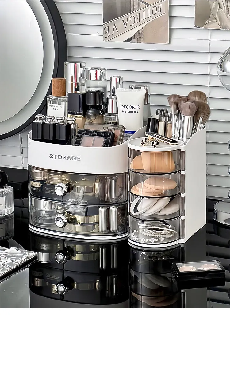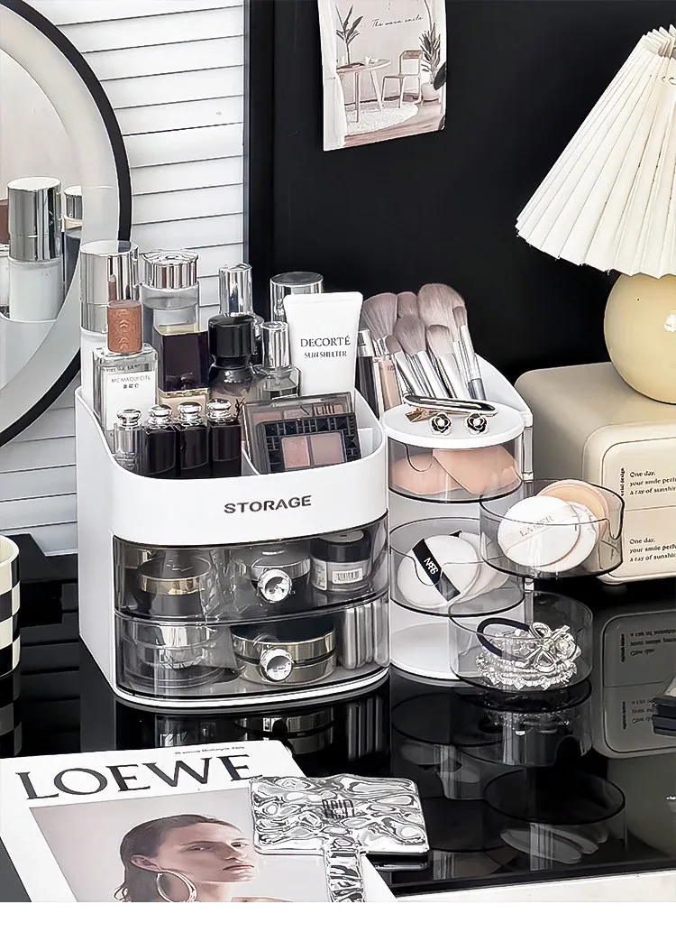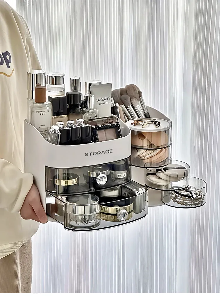 高級感漂う化粧品収納ボックス - メイクアップテーブル用、大容量のスキンケア・口紅・香水整理ラック!あなたの美しさを引き立てるスタイリッシュなアイテム!