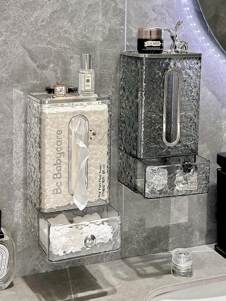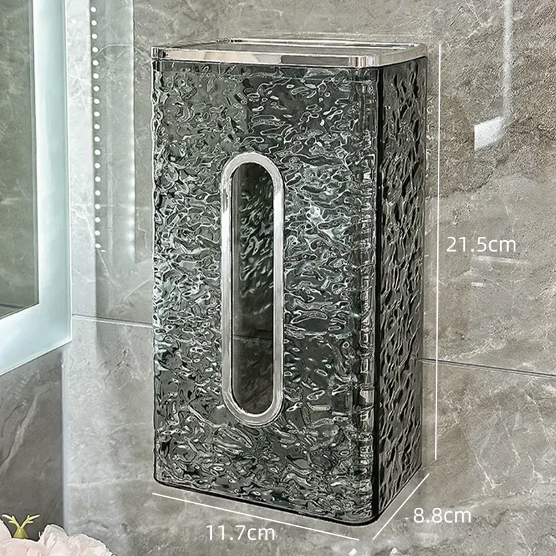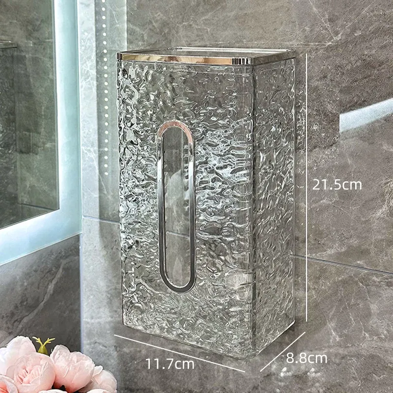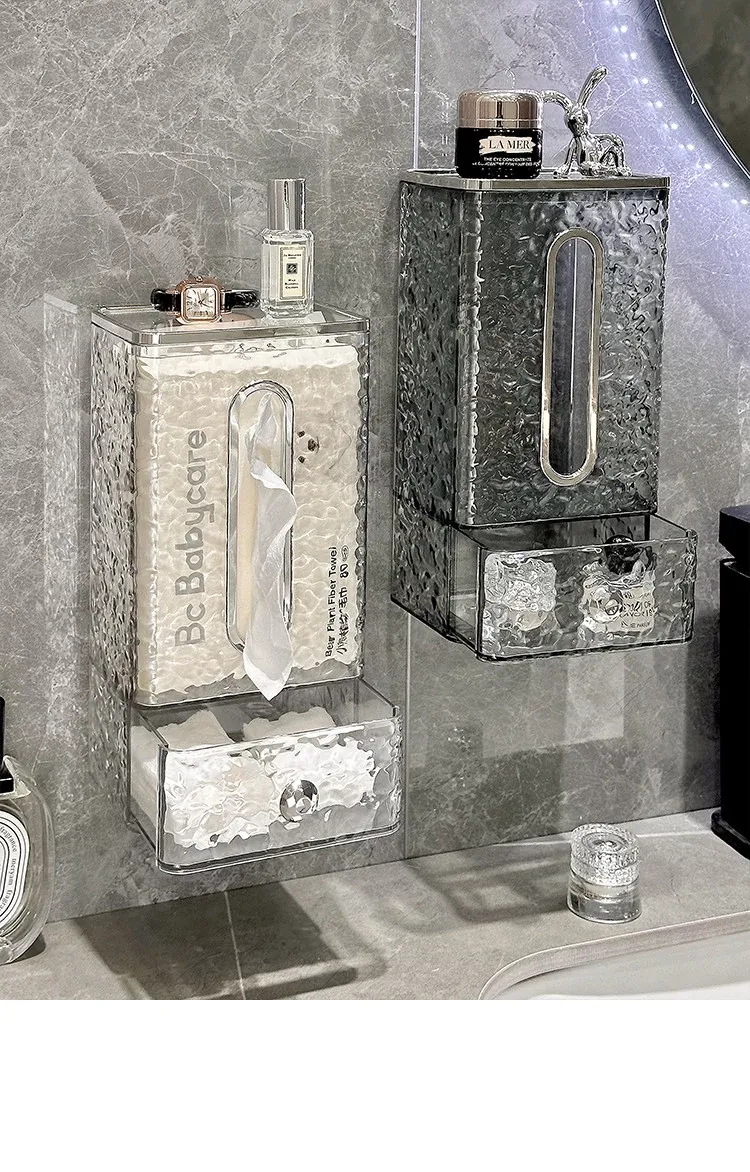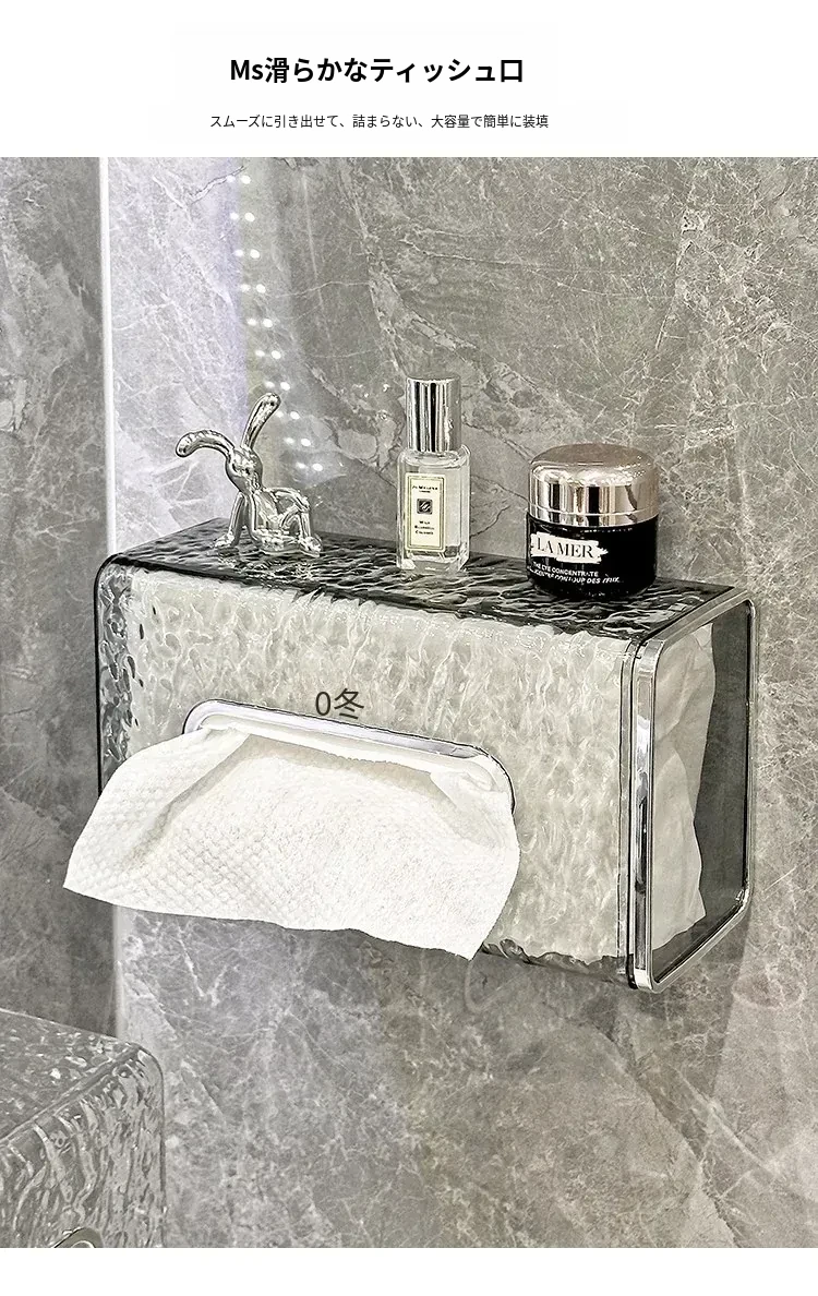 軽やかな高級感!壁掛け式洗顔タオル収納ボックス、トイレやバスルームにぴったりなクリエイティブな透明ティッシュケース。おしゃれで機能的なデザインで、家の中をスッキリ整頓!