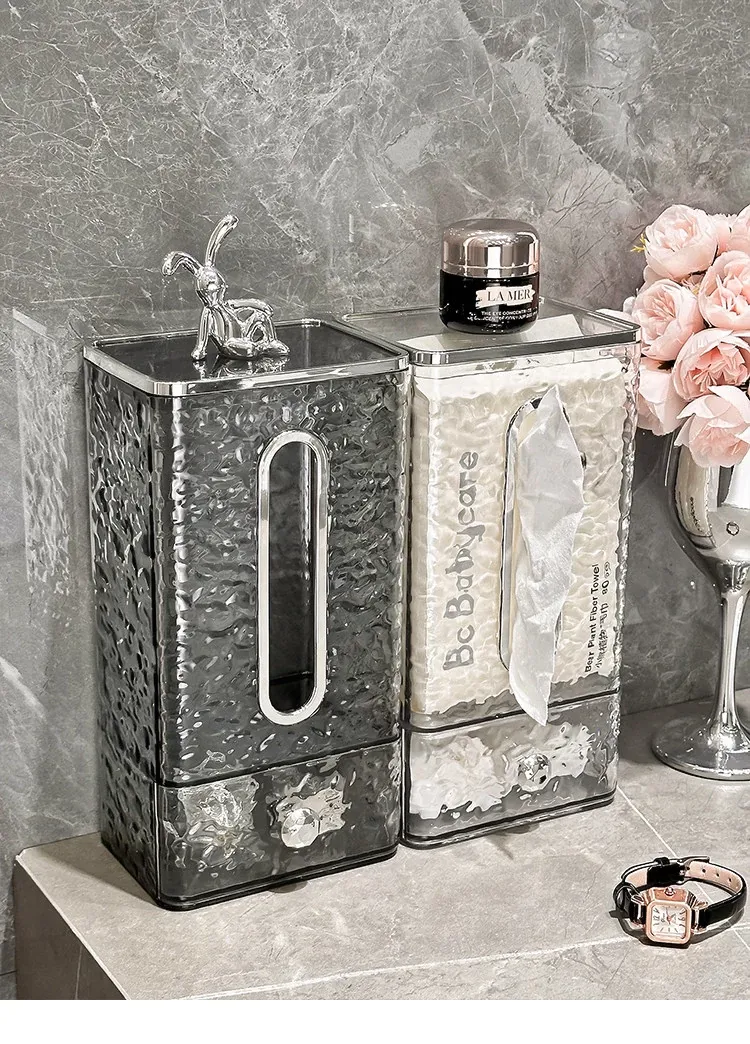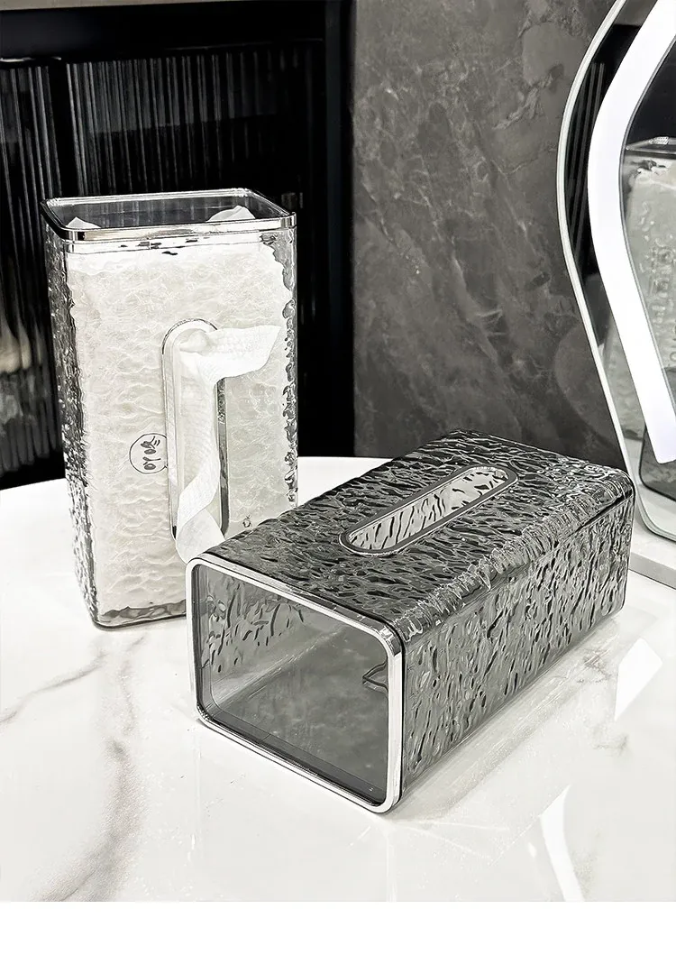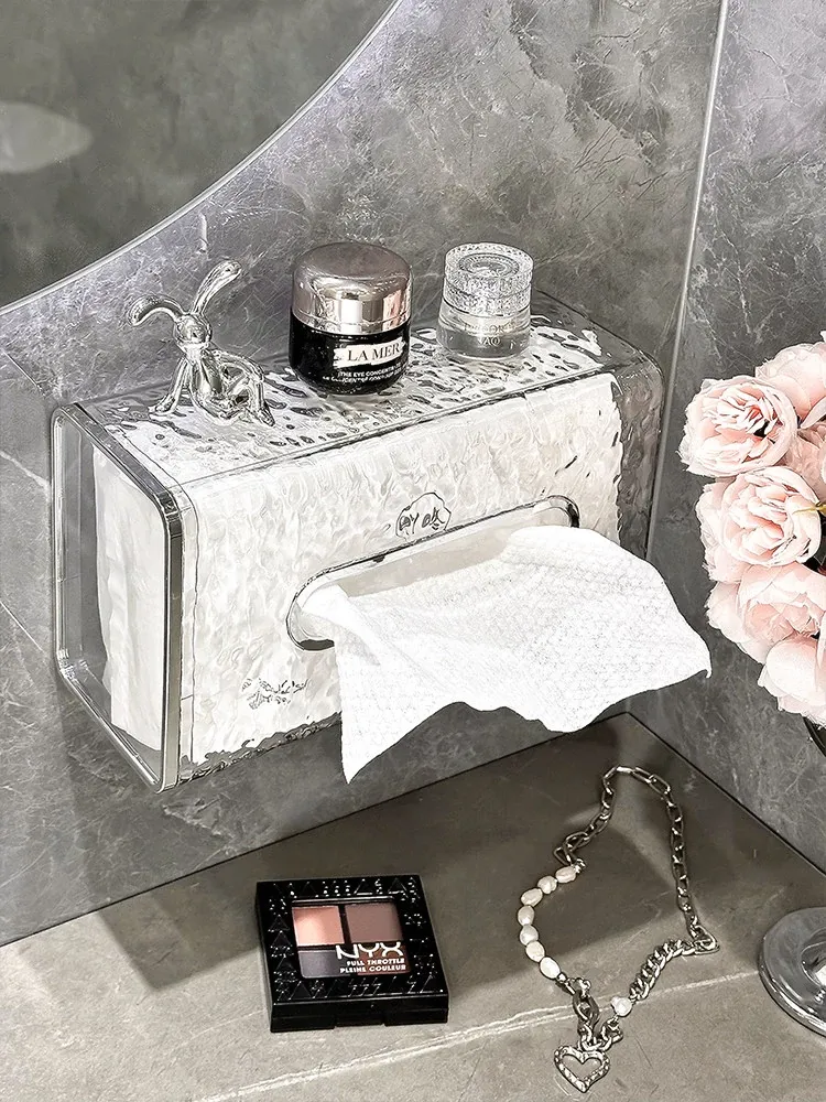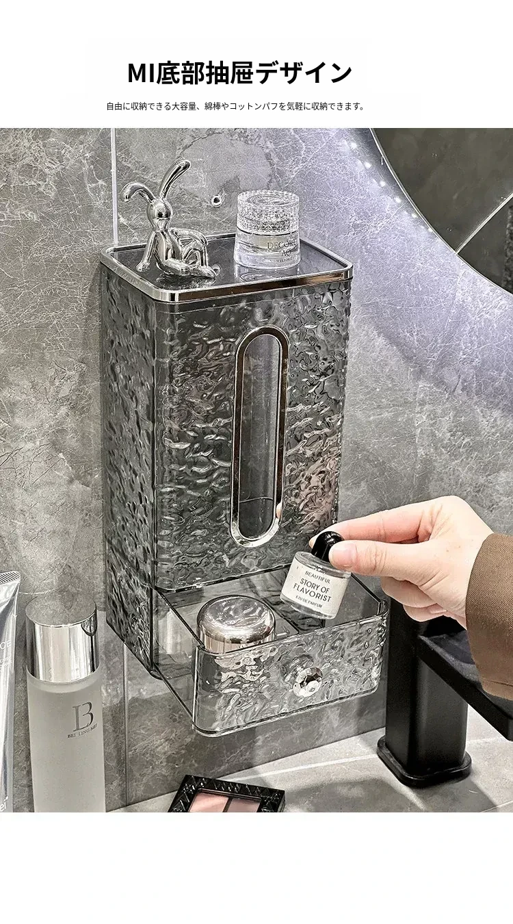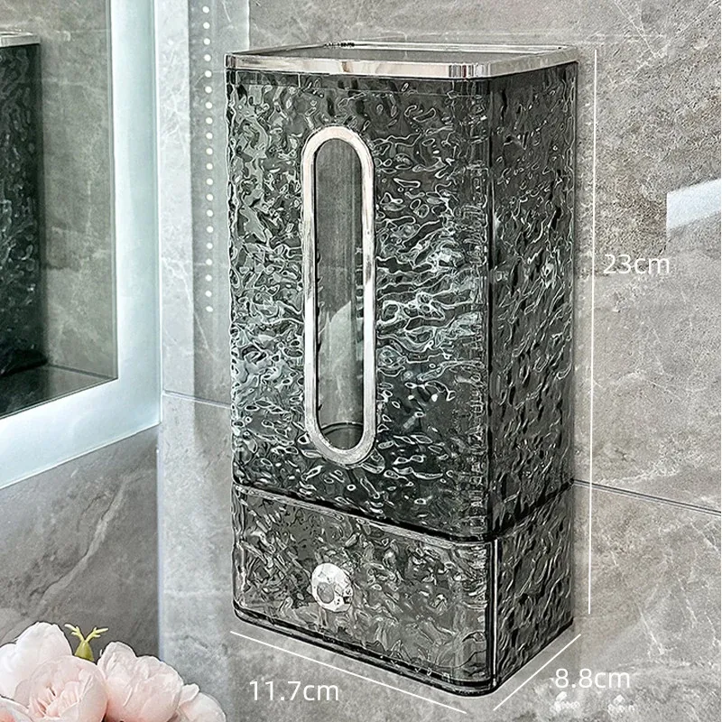 軽やかな高級感!壁掛け式洗顔タオル収納ボックス、トイレやバスルームにぴったりなクリエイティブな透明ティッシュケース。おしゃれで機能的なデザインで、家の中をスッキリ整頓!