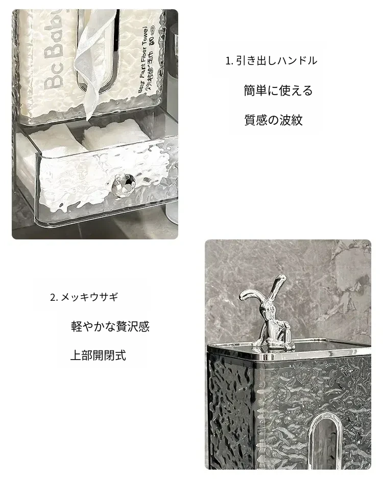 透明シルバー-フェイスタオル収納ボックス+ウサギ
