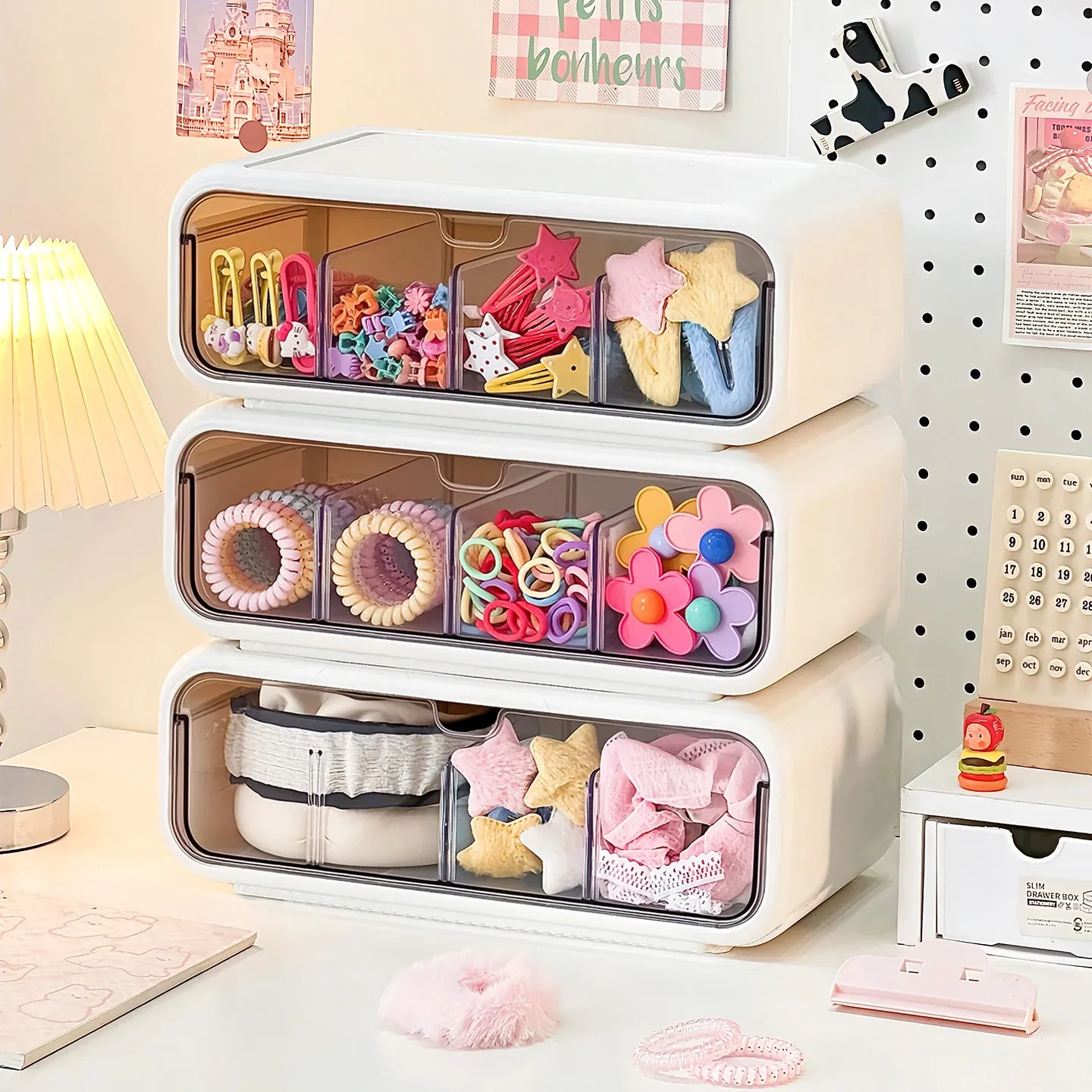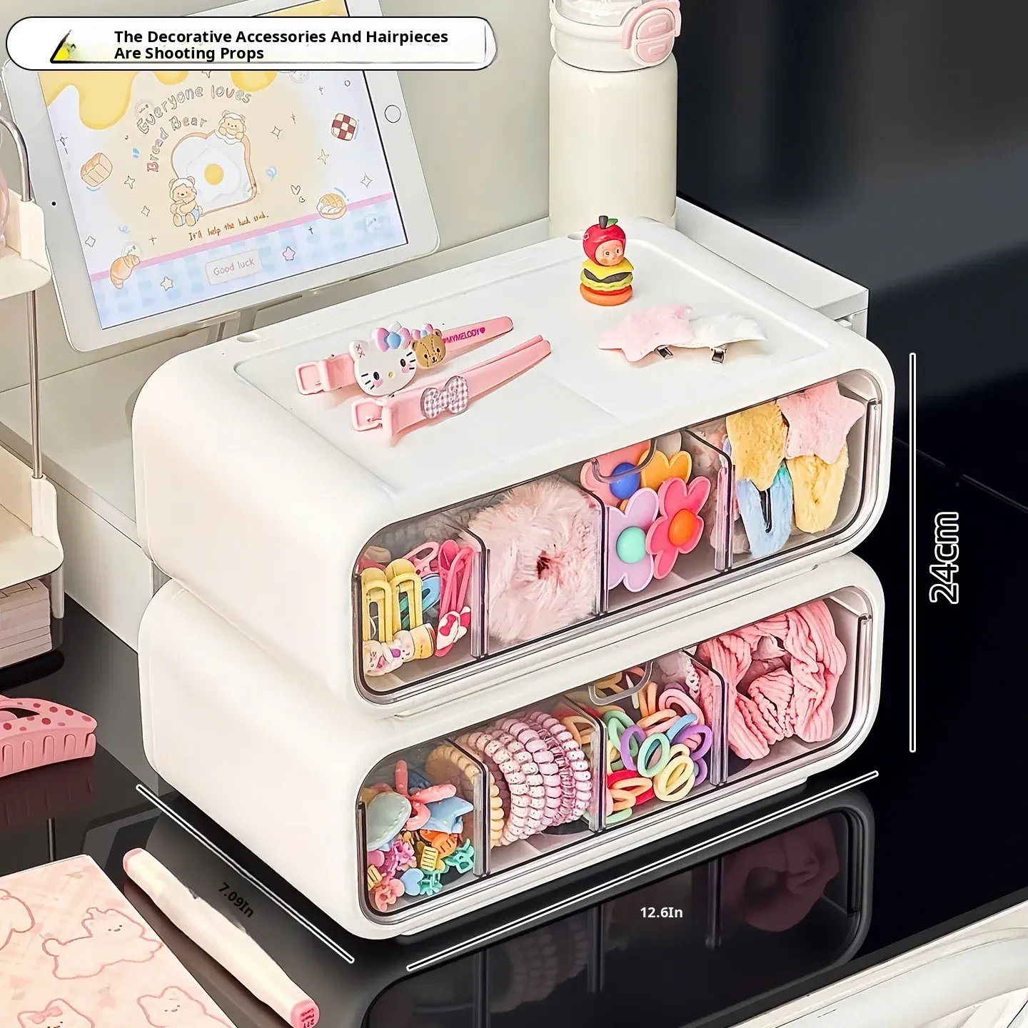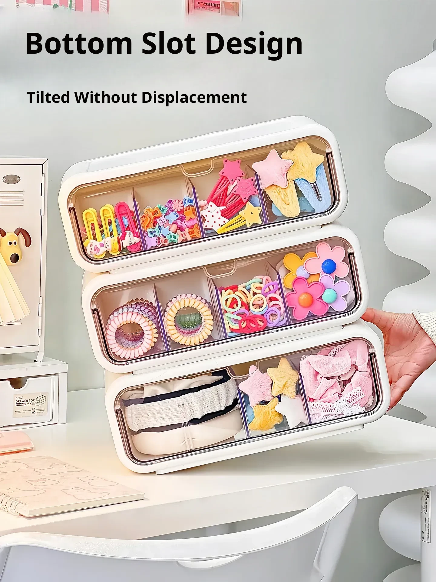 Girls' Hair Accessories Storage Box - Drawer Style Organizer for Hair Clips, Elastics, and Scrunchies - Multi-Layer Organizer for Hair Ties and Hair Care Essentials