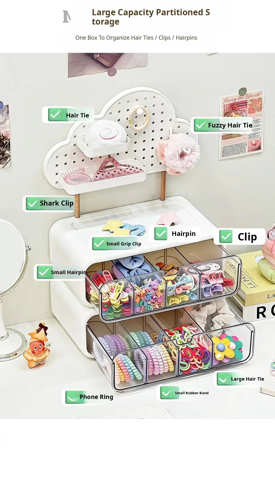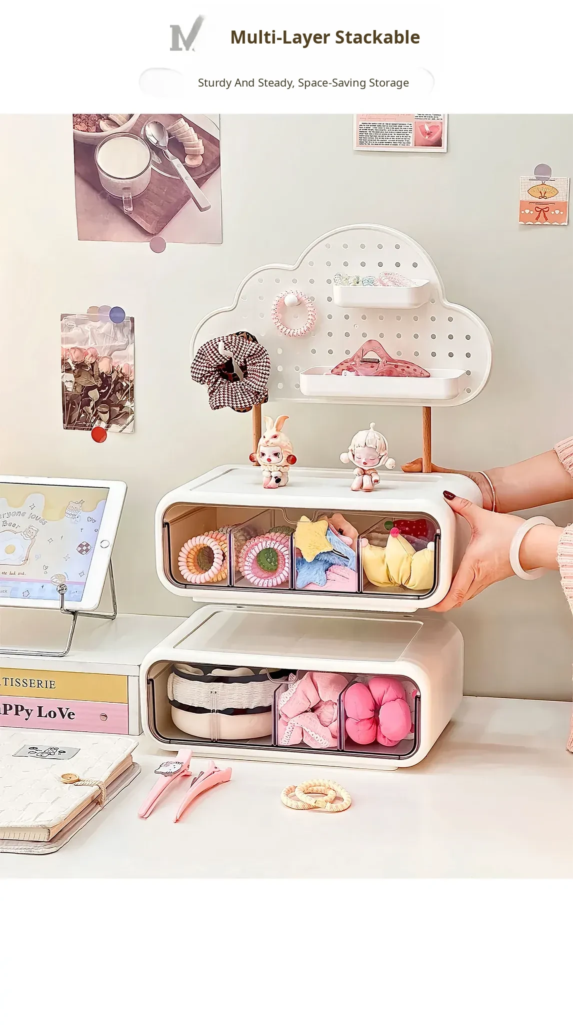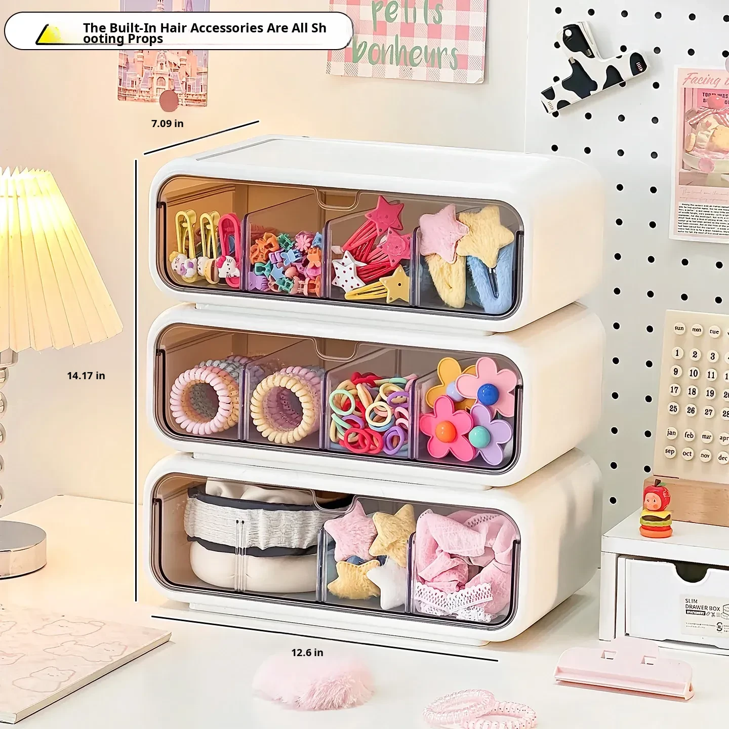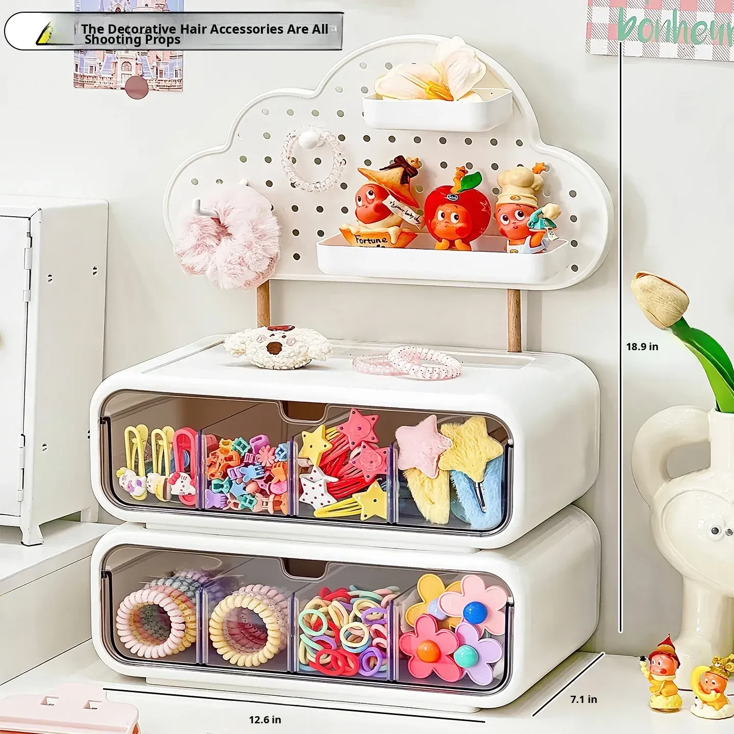 Girls' Hair Accessories Storage Box - Drawer Style Organizer for Hair Clips, Elastics, and Scrunchies - Multi-Layer Organizer for Hair Ties and Hair Care Essentials