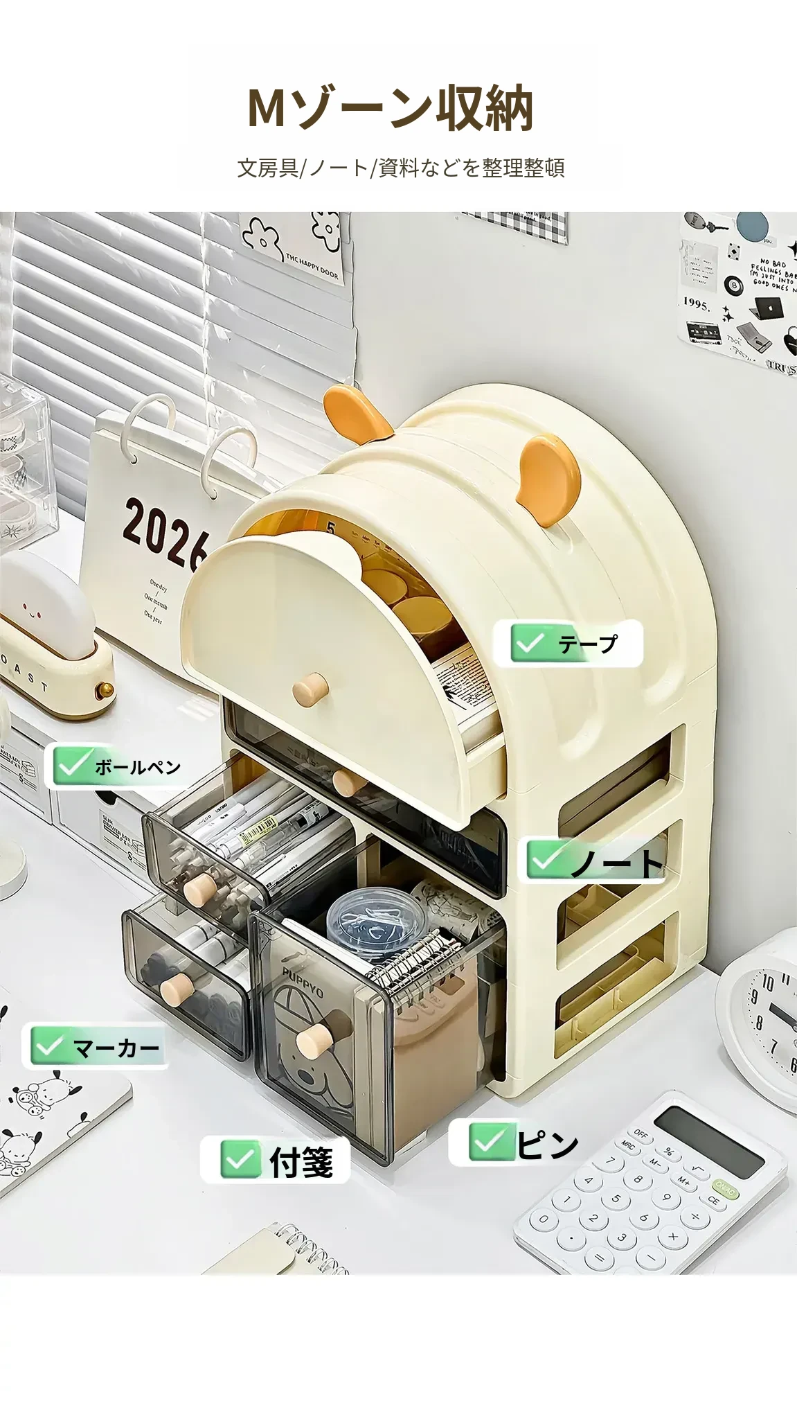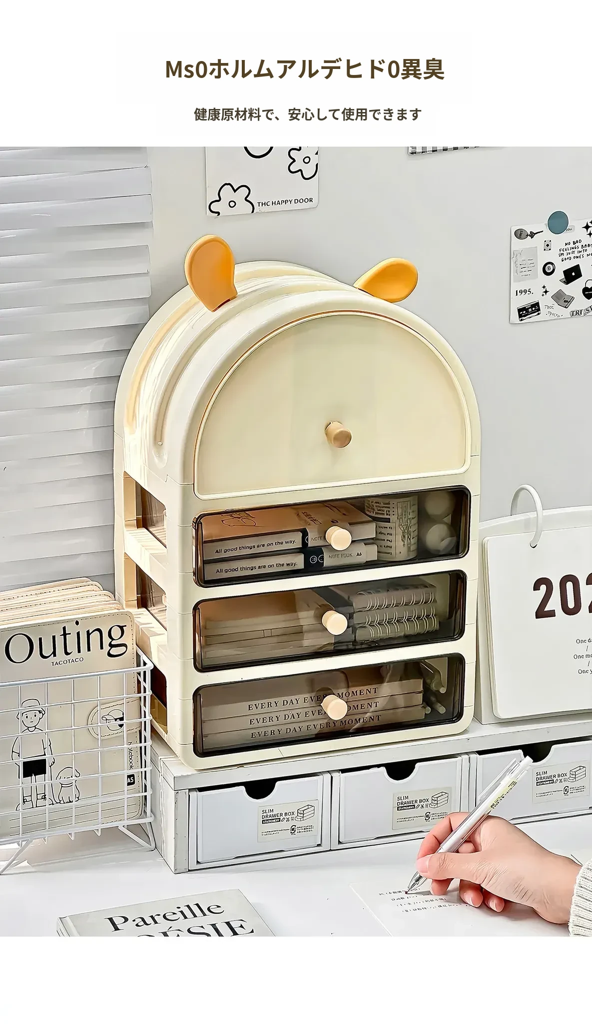 小耳収納ボックス-4層4引き出し【縦引きタイプ】✅ 厚手で無臭