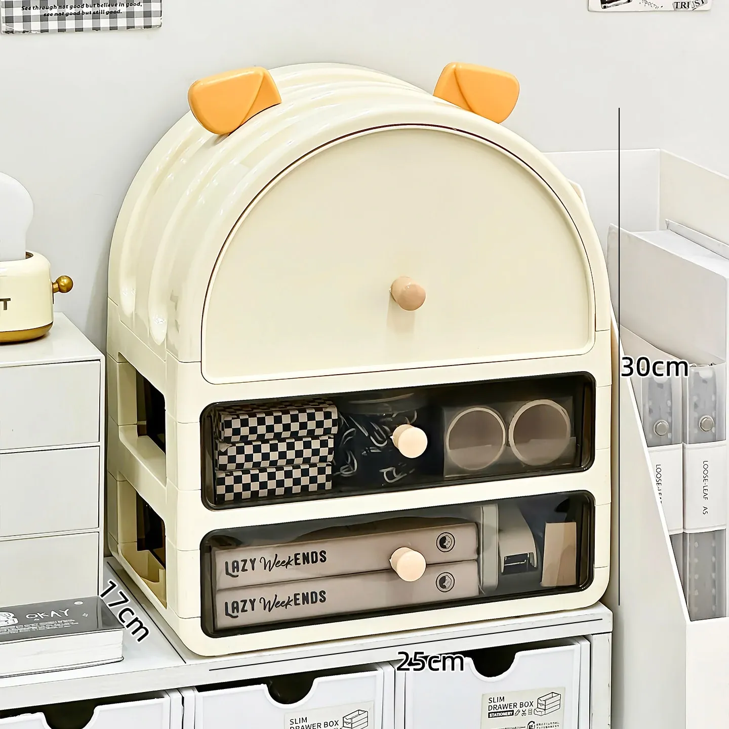 小耳収納ボックス-3層2引き出し✅厚手で無味