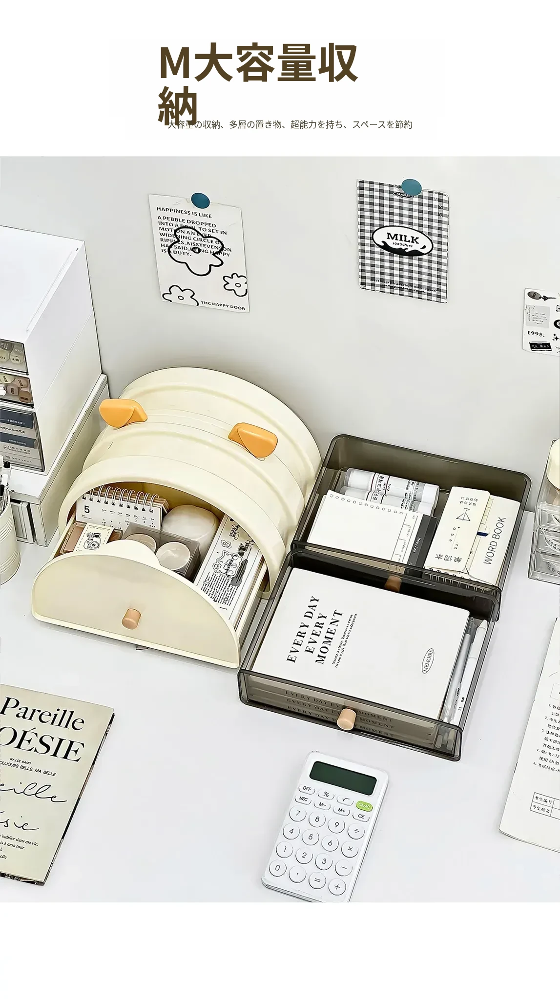デスク収納ラック 大容量の多段式デスク用品整理ボックス 書籍・文房具に最適な引き出し式小物入れ すっきり片付けて、作業効率UP!