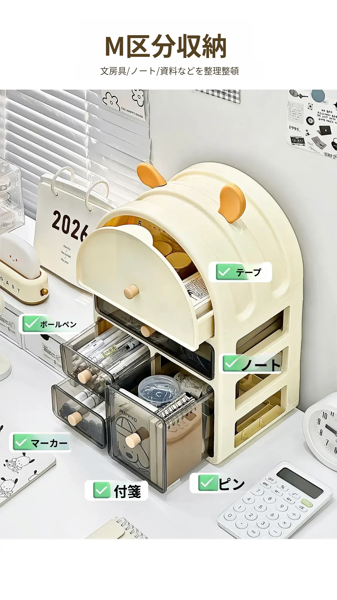 小耳収納ボックス-4層4引き出し【縦型】✅厚手で無味