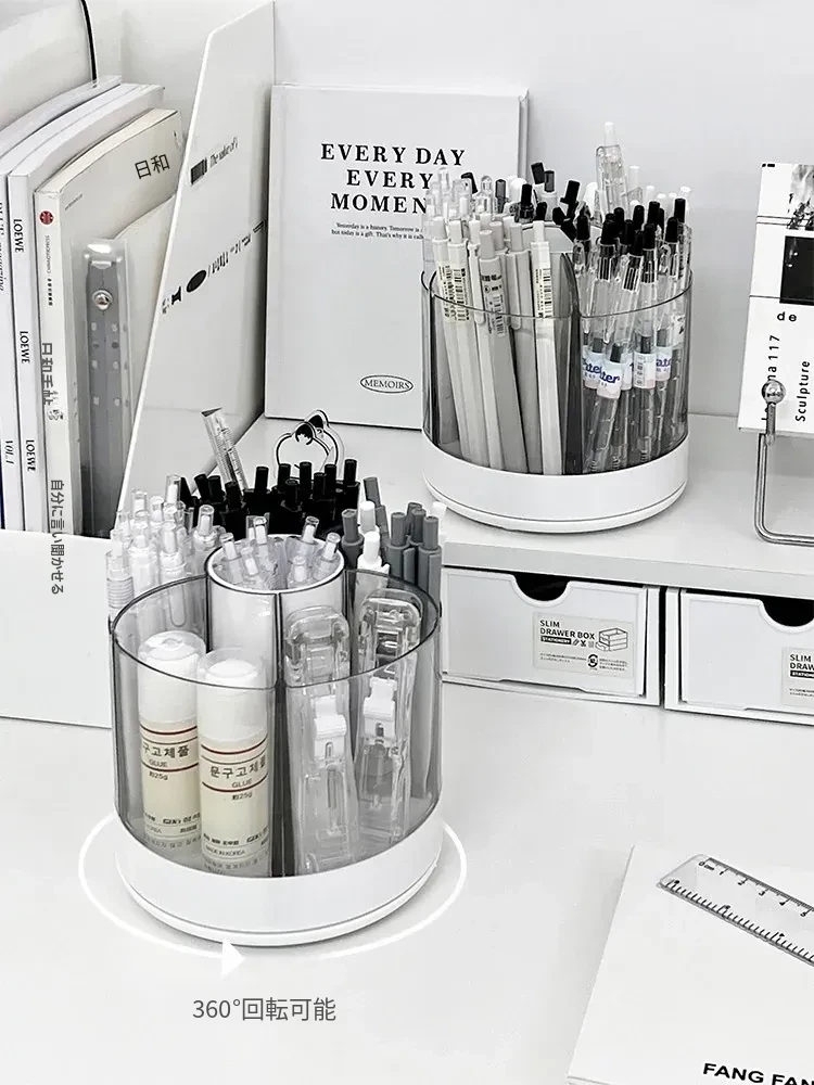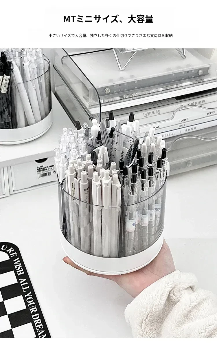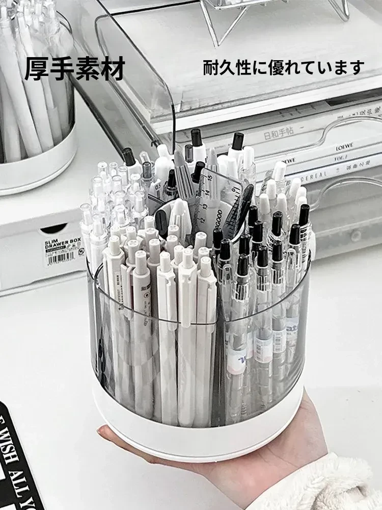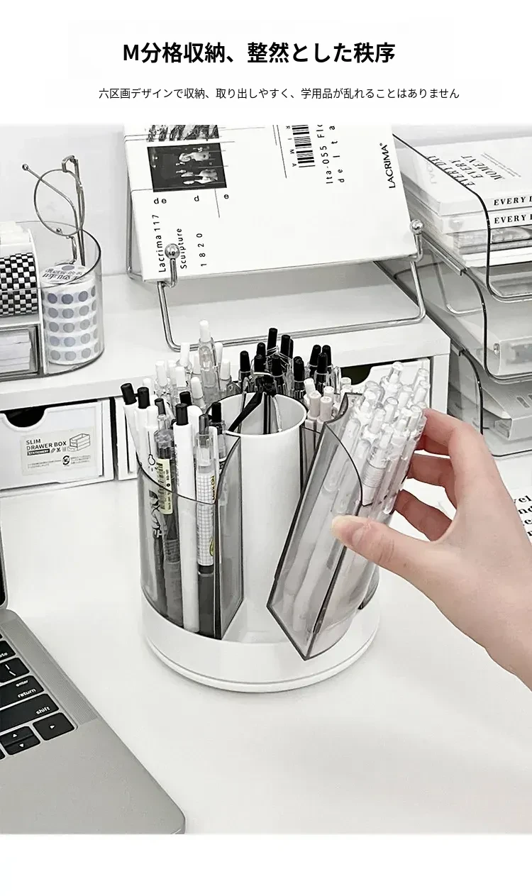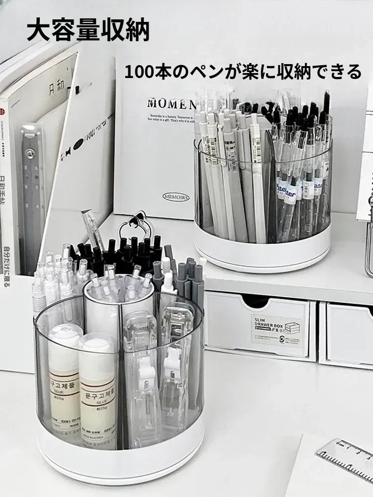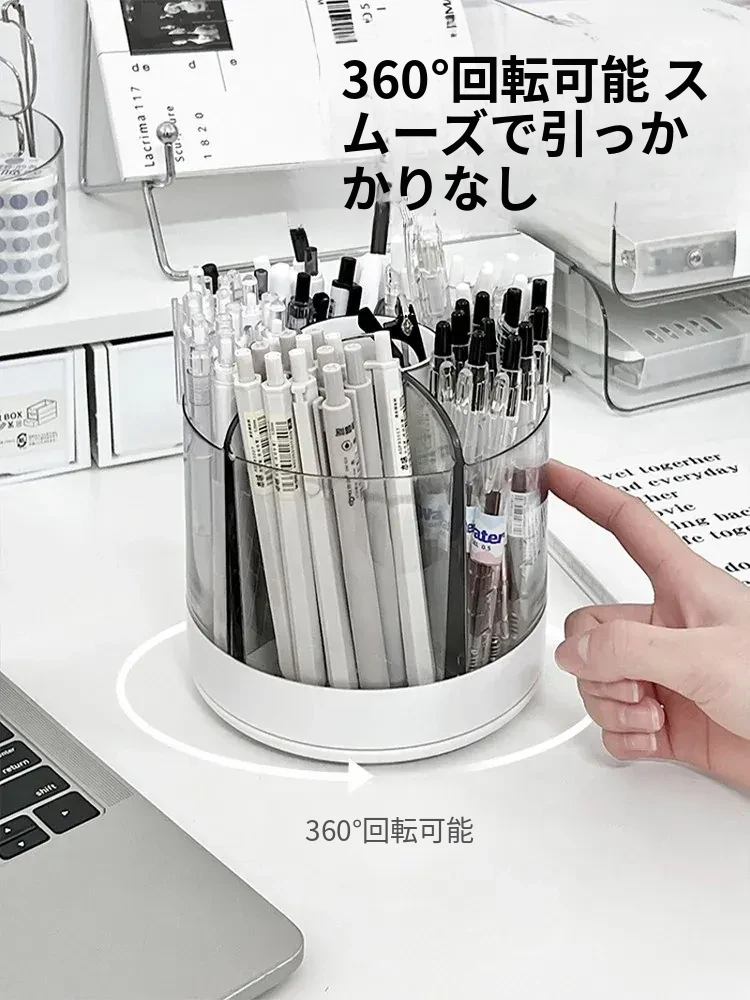 回転式ペン立て - 高級感漂うオフィスデスク用アクリル製多機能大容量文房具収納ボックス!スタイリッシュで洗練されたデザインで、あなたのデスクを美しく整え、作業効率をアップさせます。