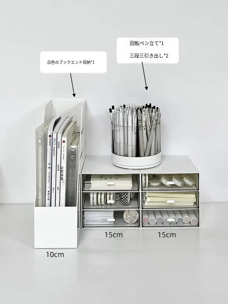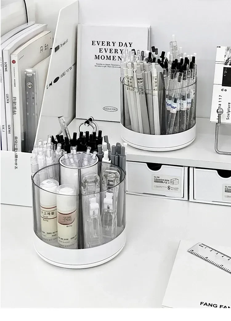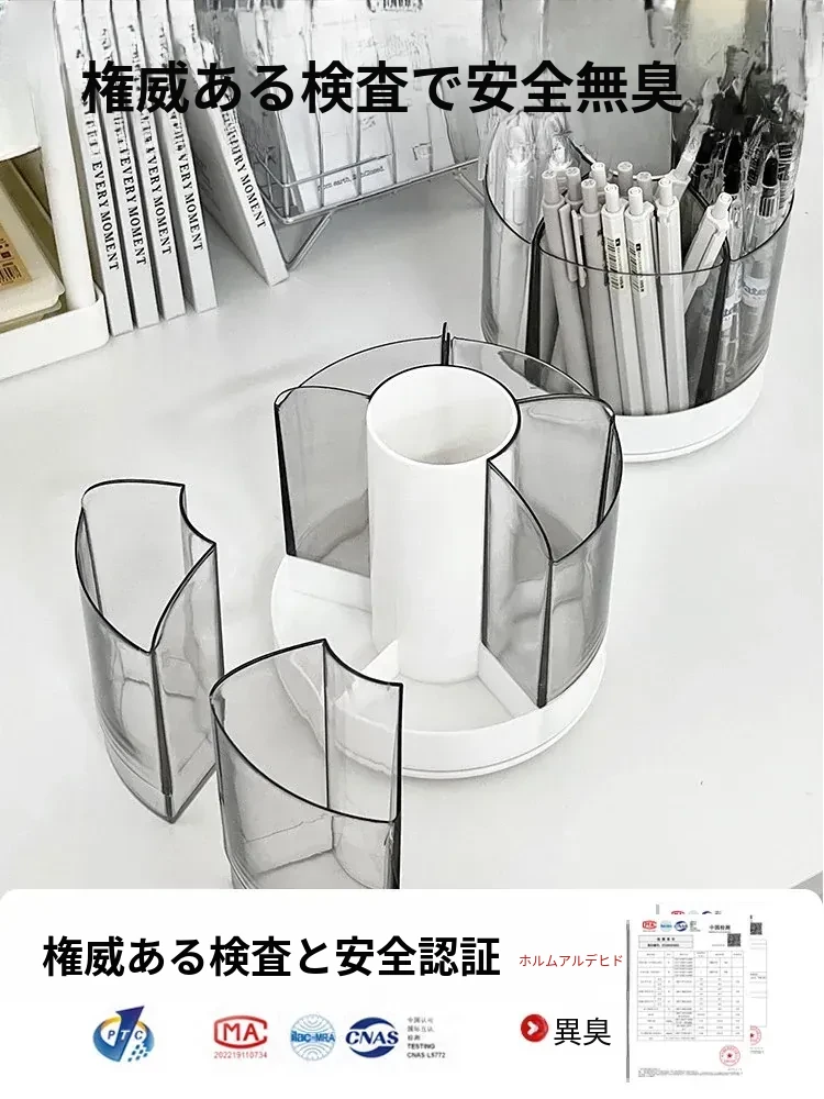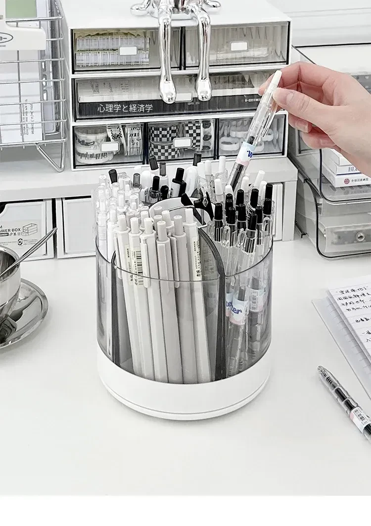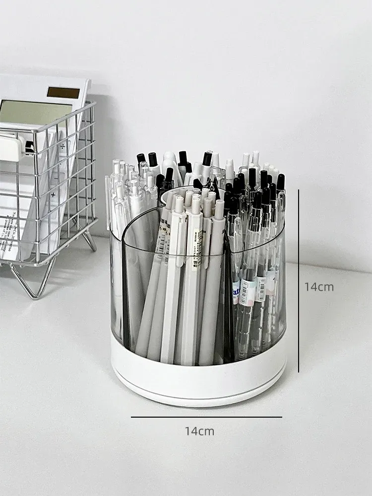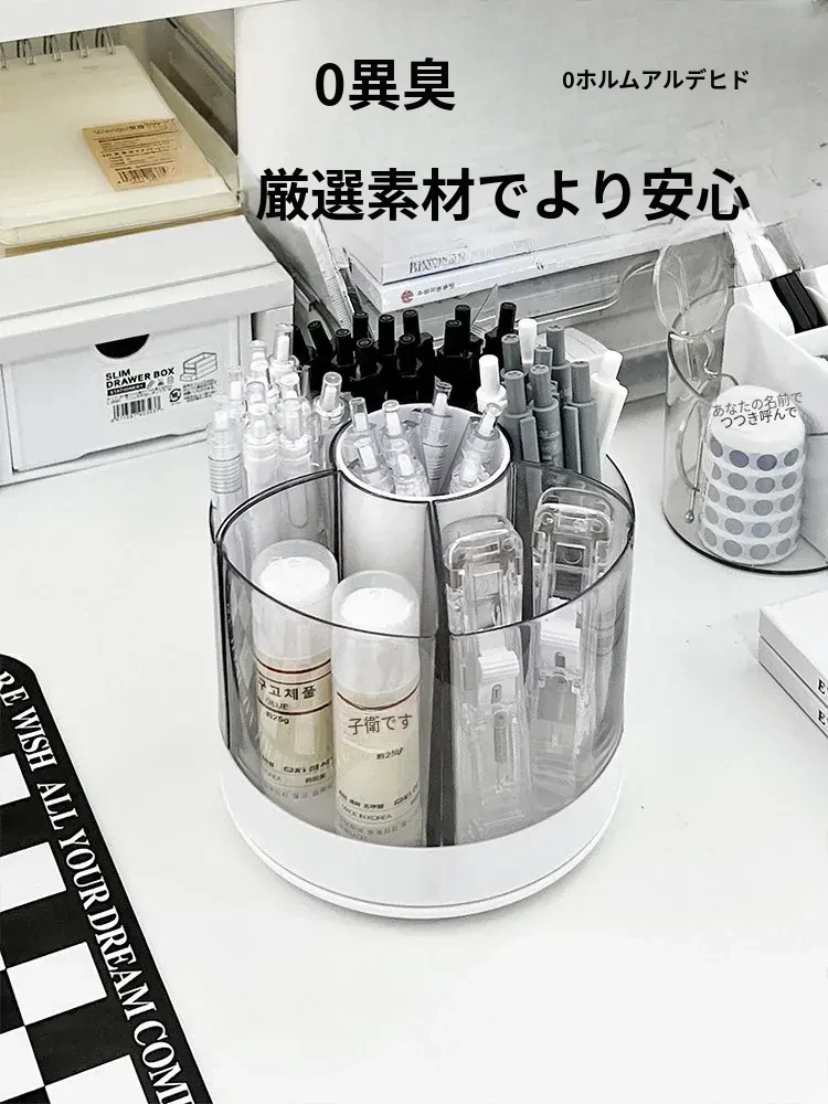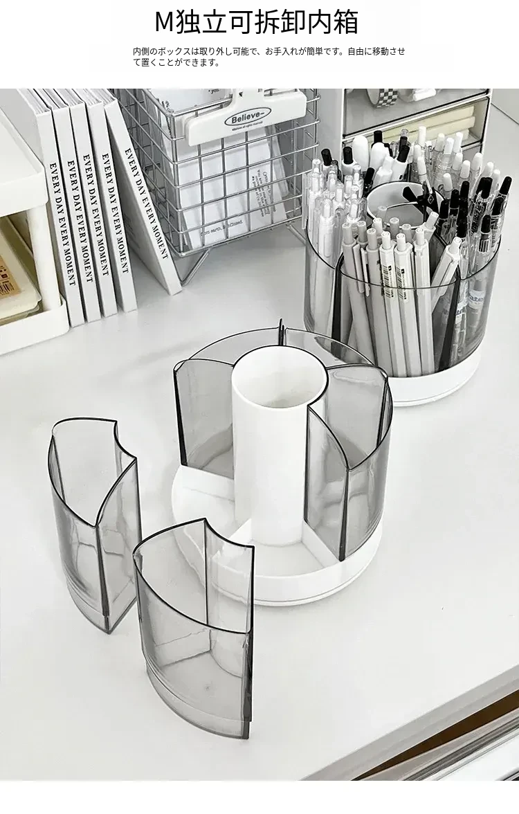 回転式ペン立て - 高級感漂うオフィスデスク用アクリル製多機能大容量文房具収納ボックス!スタイリッシュで洗練されたデザインで、あなたのデスクを美しく整え、作業効率をアップさせます。