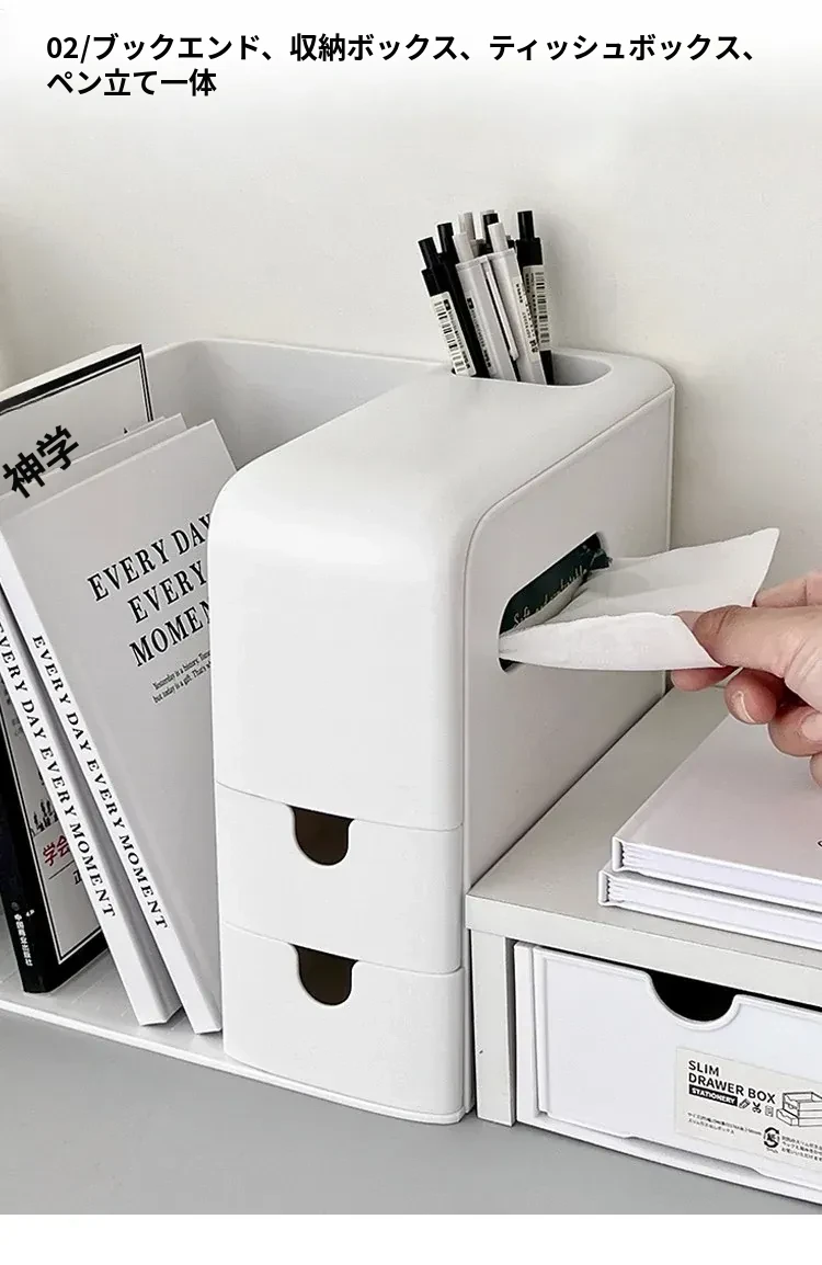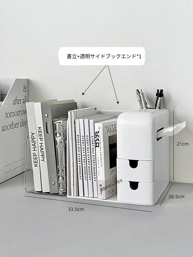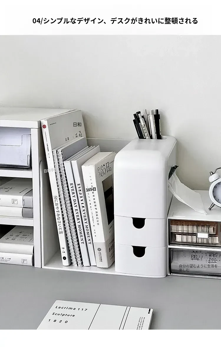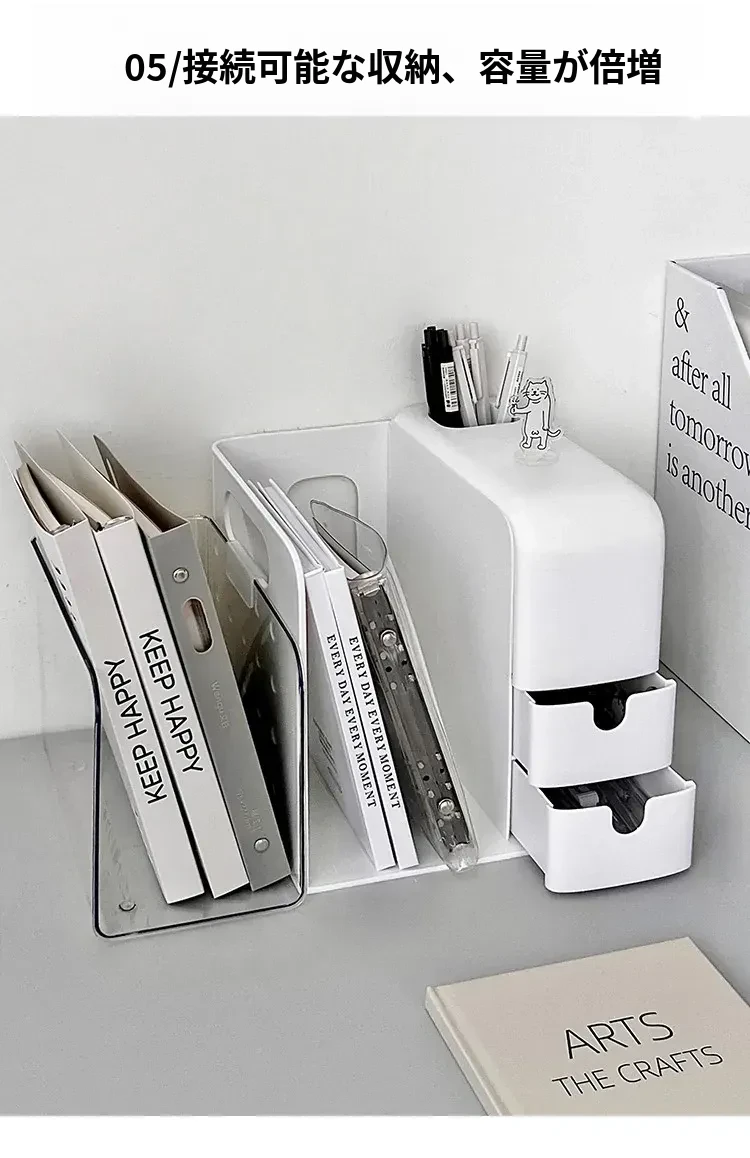 デスク用収納ボックス 抽斗式ペン立て 宿舎に最適!多機能ブックスタンド 書籍収納ラック オフィスデスク上のファイルスタンドで、整理整頓が簡単に!