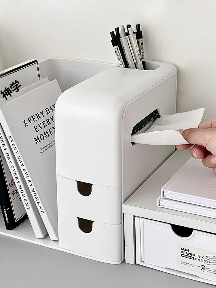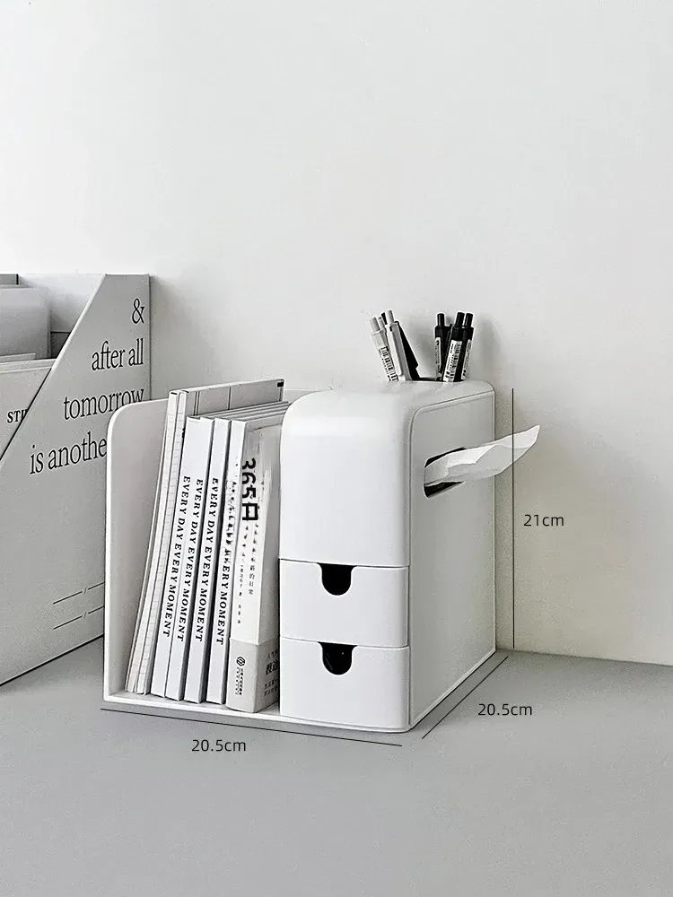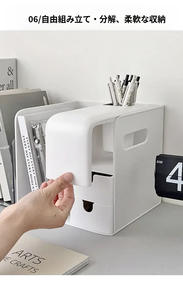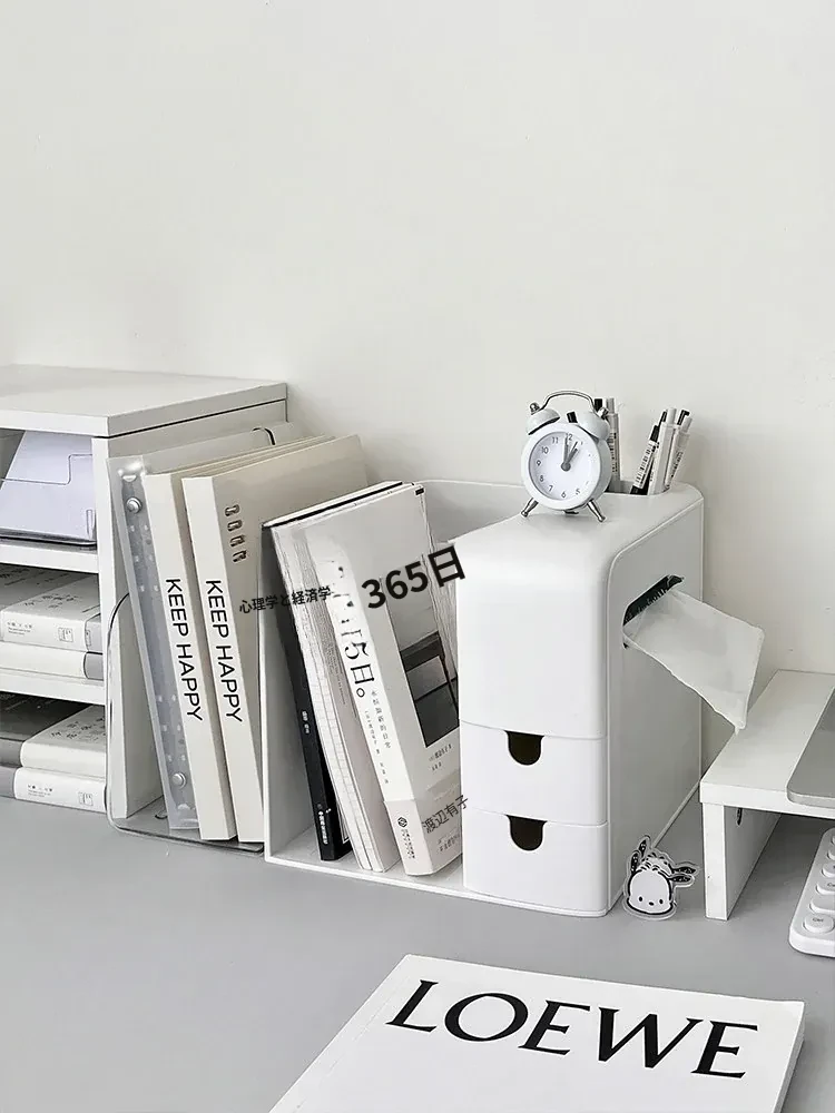 デスク用収納ボックス 抽斗式ペン立て 宿舎に最適!多機能ブックスタンド 書籍収納ラック オフィスデスク上のファイルスタンドで、整理整頓が簡単に!