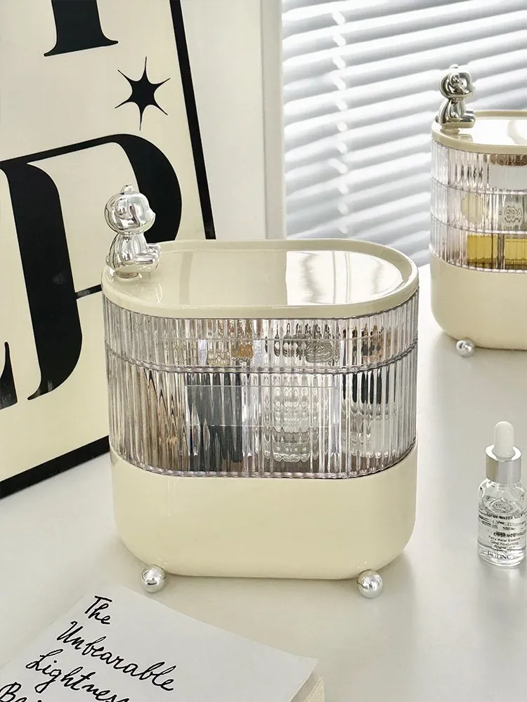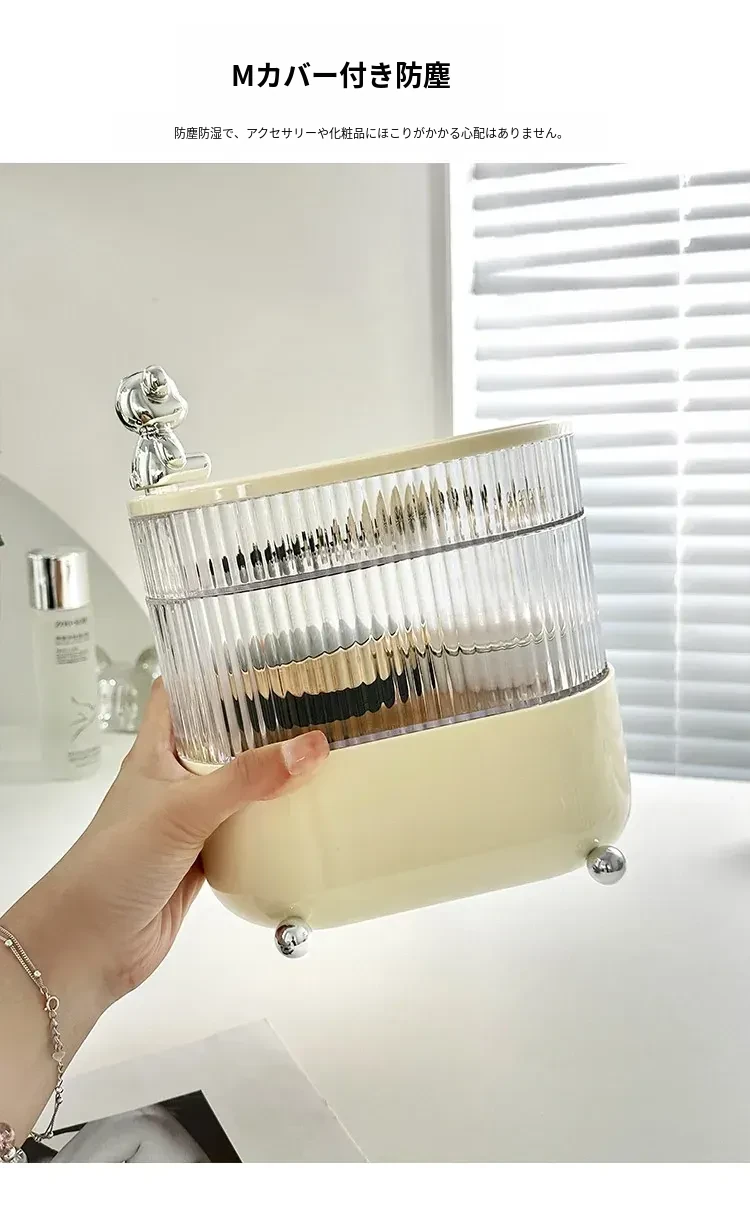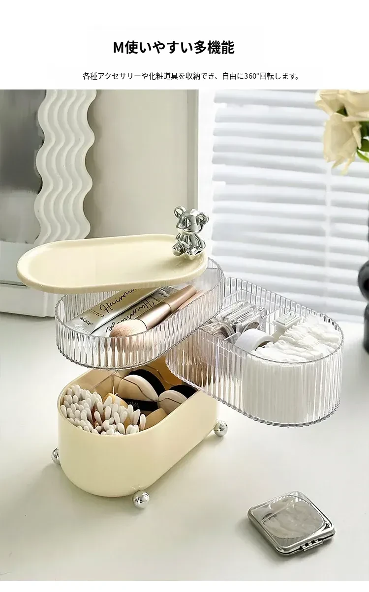メイクアップコットン収納ボックス|化粧台を美しく整理!リップや綿棒もすっきり収納できる防塵・多機能デスクオーガナイザー。あなたの化粧品をスタイリッシュに守ります!