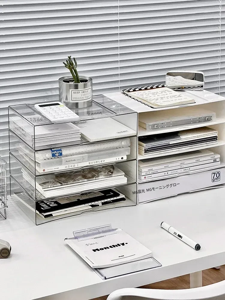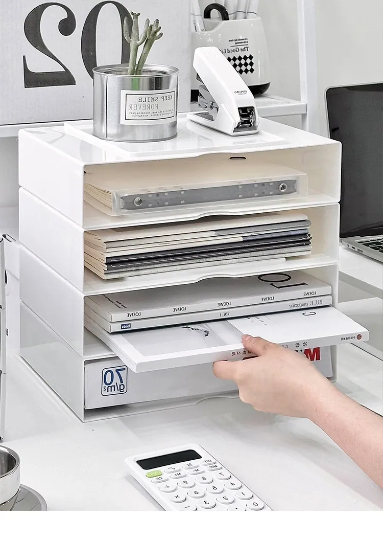 多機能デスク収納ラック - 寝室やオフィスに最適!文房具や書籍をすっきり整理できる多層A4ファイル収納ラック。スペースを有効活用し、作業効率をアップ!おしゃれで実用的なデザインで、あなたのデスクを美しく整えます。