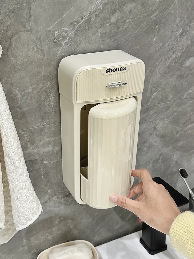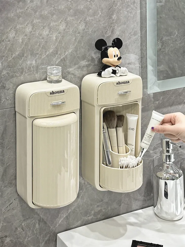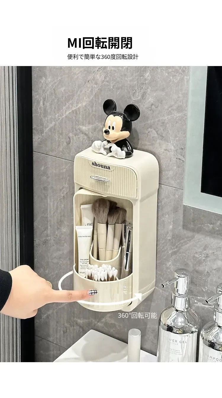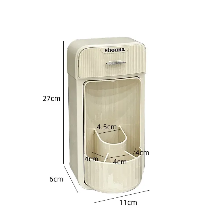 グレーとホワイトクリームイエロー-壁掛け回転メイクブラシスタンド