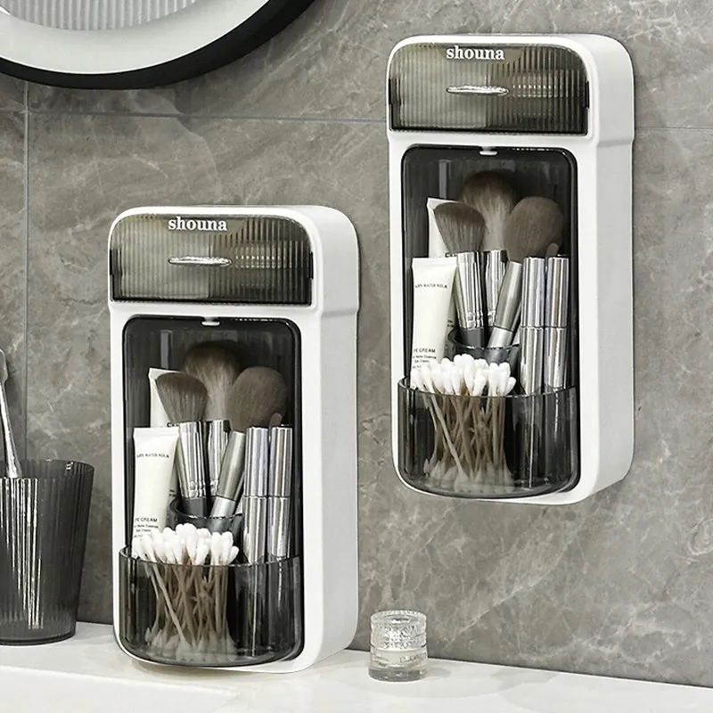 2個のグレーとホワイト-壁掛け回転メイクブラシスタンド