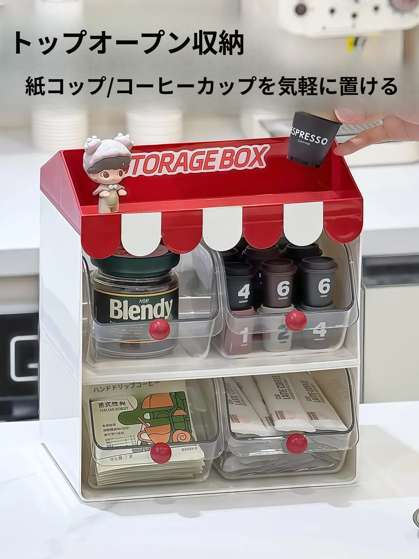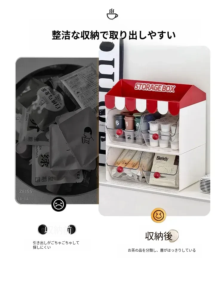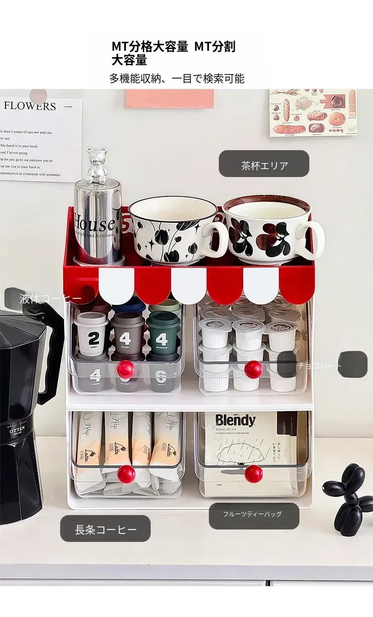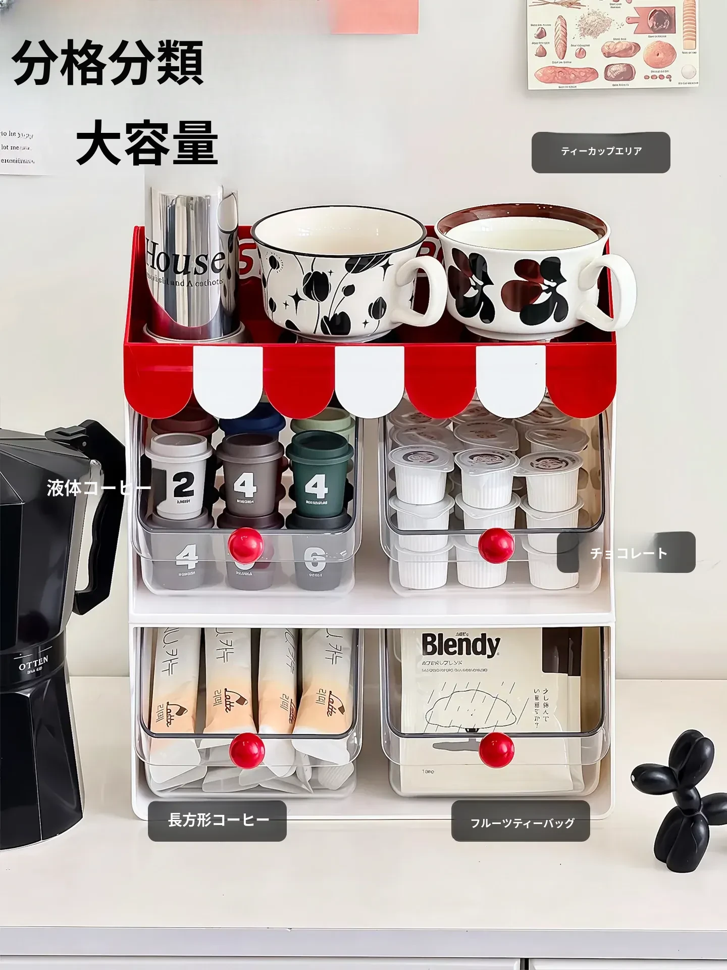 ティーバッグ収納ボックス・カプセルコーヒー・ティー間の整理整頓に最適!美しいデザインのデスクトップ・サイドボード用多層収納ラックで、スッキリとした水バー台を実現!