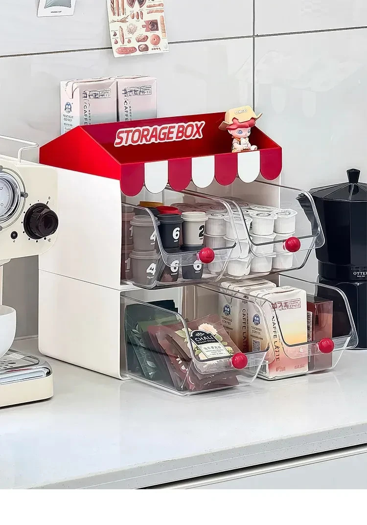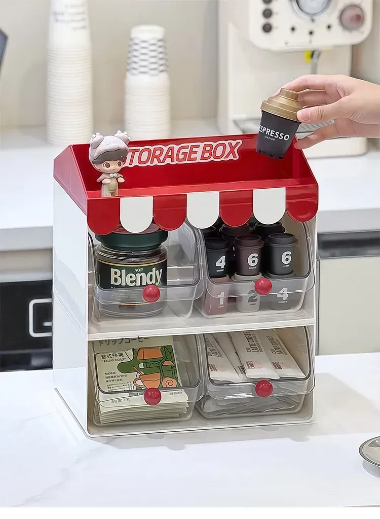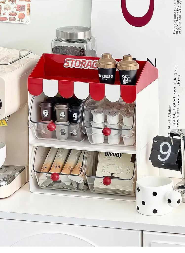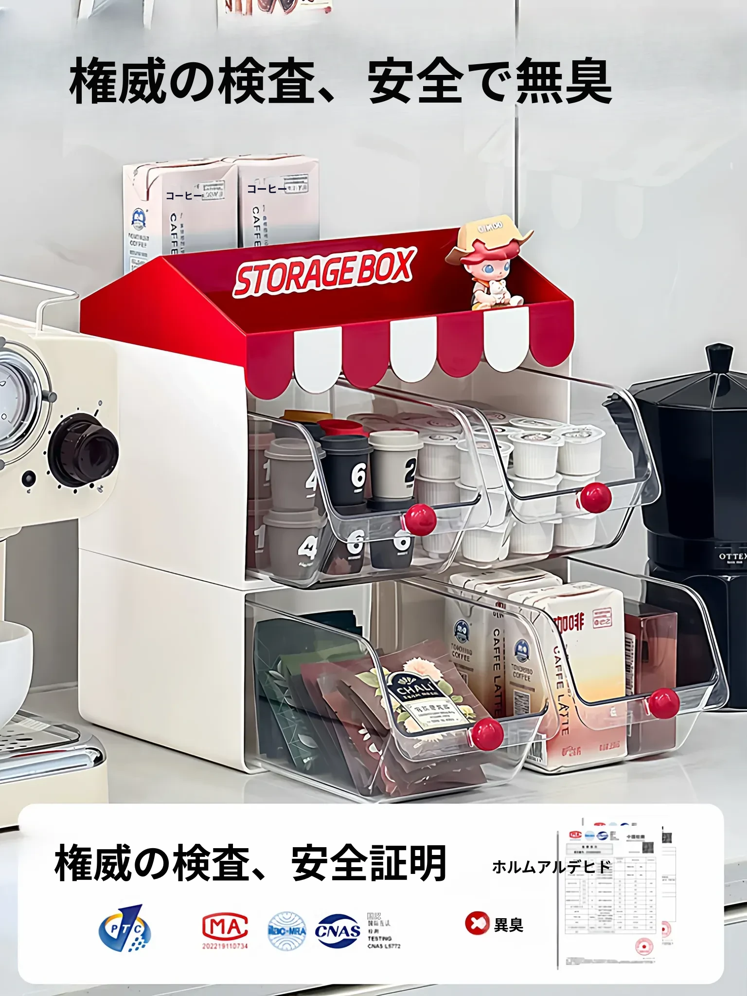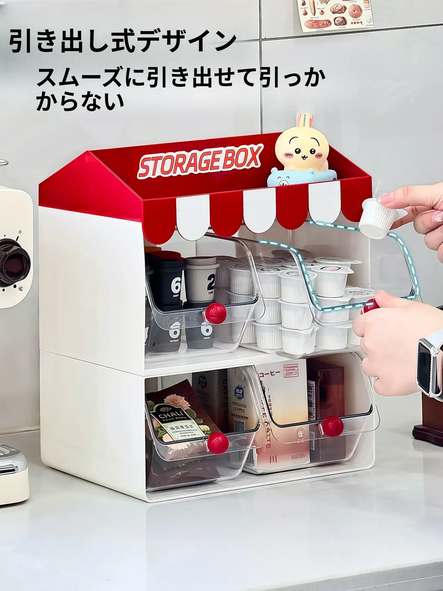 ティーバッグ収納ボックス・カプセルコーヒー・ティー間の整理整頓に最適!美しいデザインのデスクトップ・サイドボード用多層収納ラックで、スッキリとした水バー台を実現!