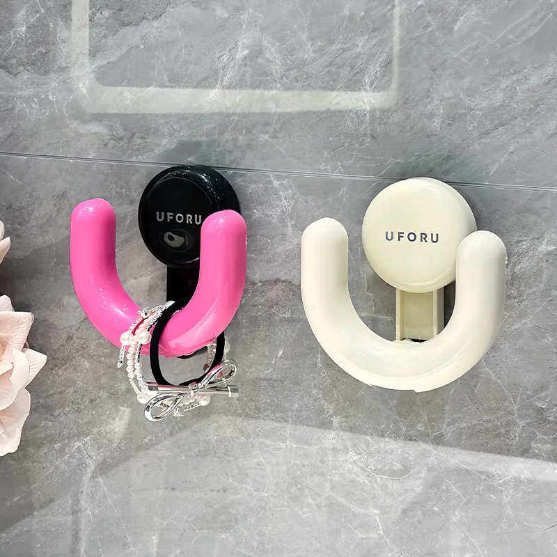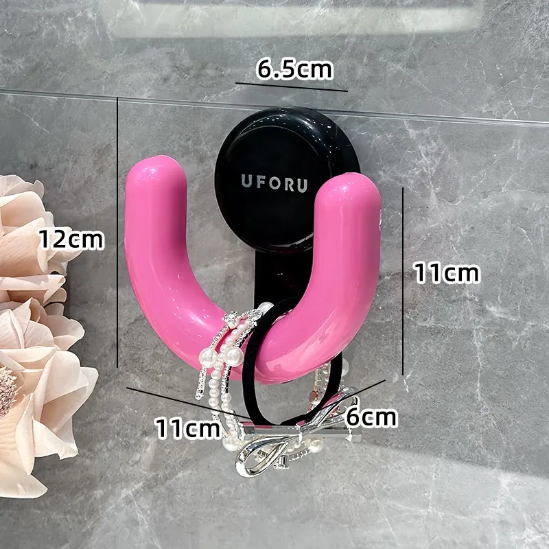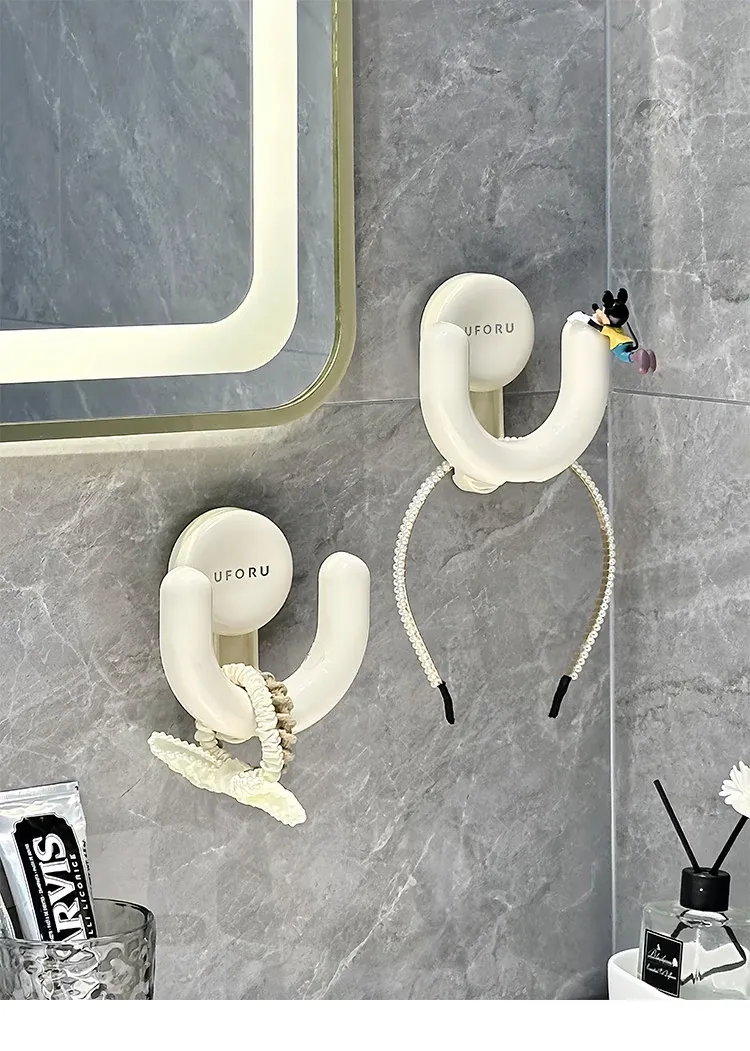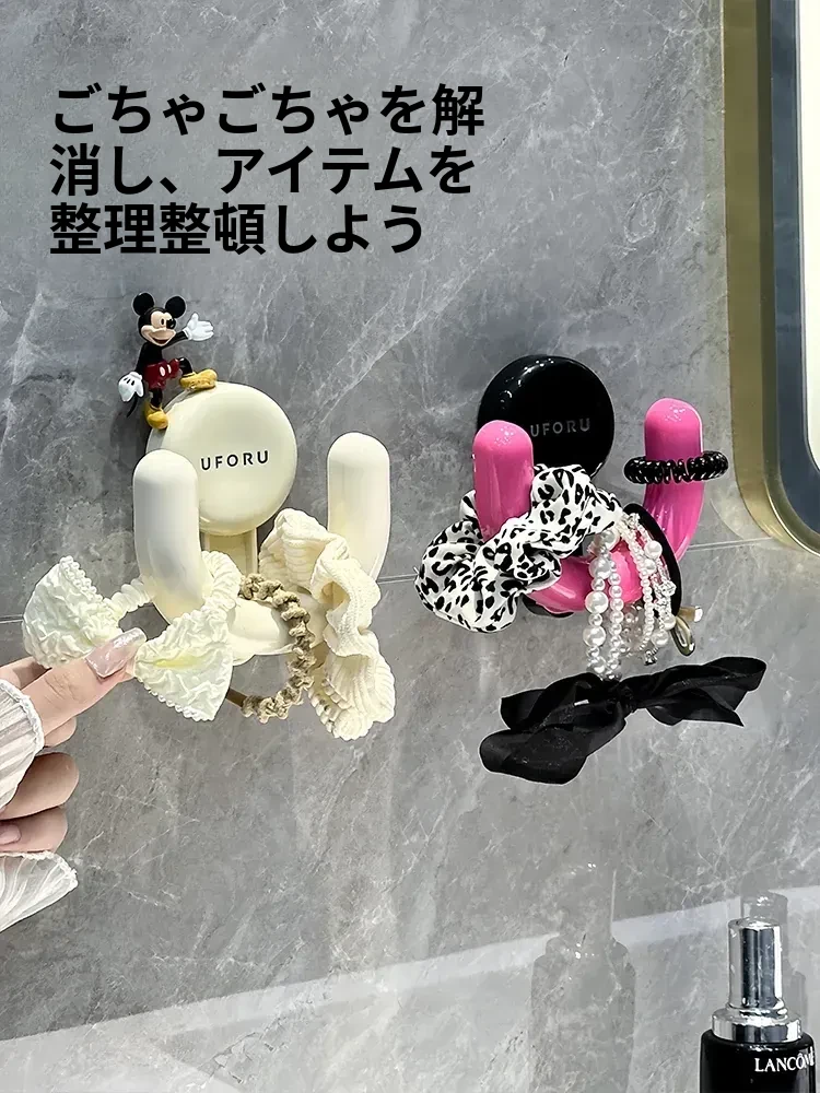 吸盤式トイレ用ヘアゴム収納ラック - 壁掛けで簡単取り付け!洗面台をスッキリ整理、ヘアアクセサリーやクリップをすっきり収納。おしゃれで便利なデザインで、毎日のビューティータイムをもっと楽しく!