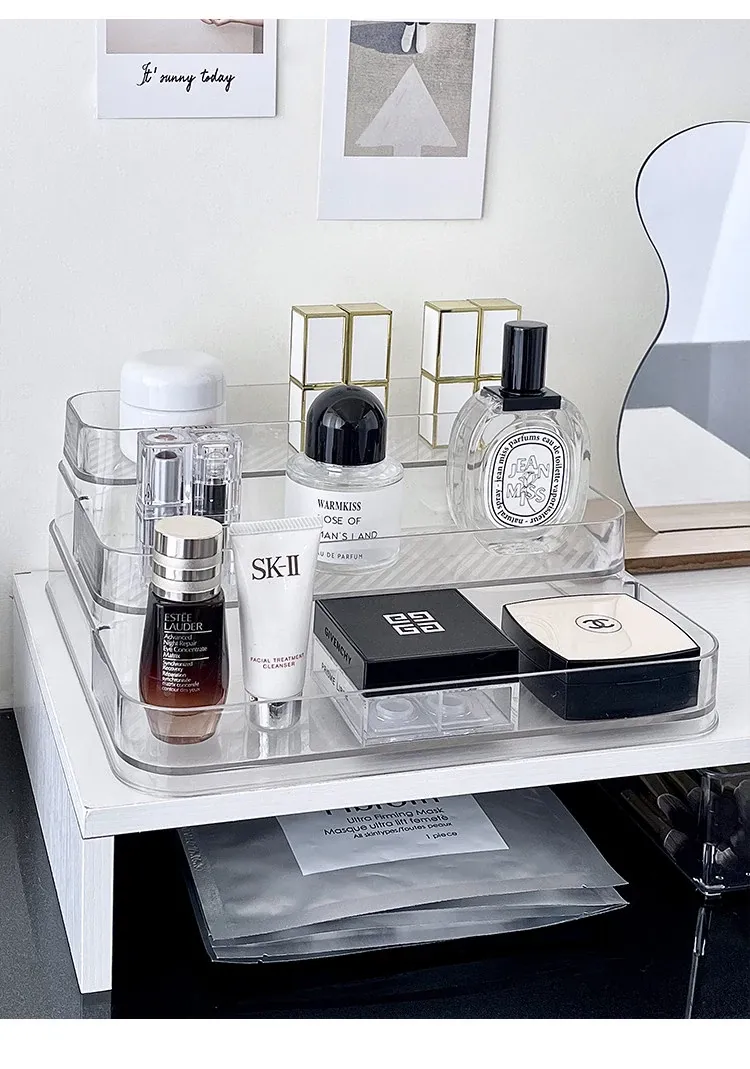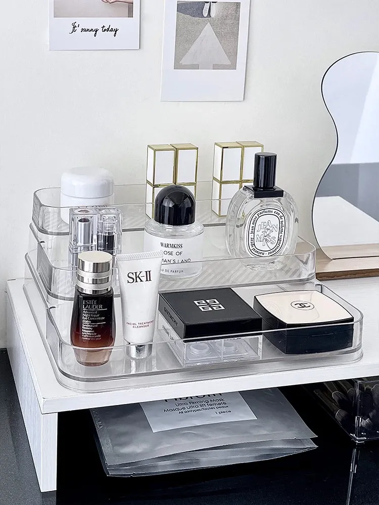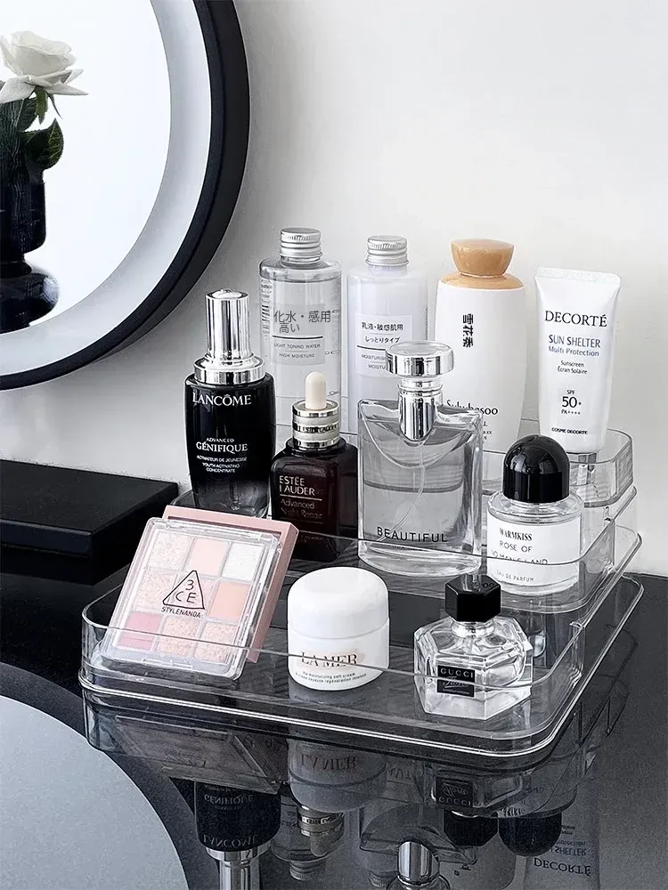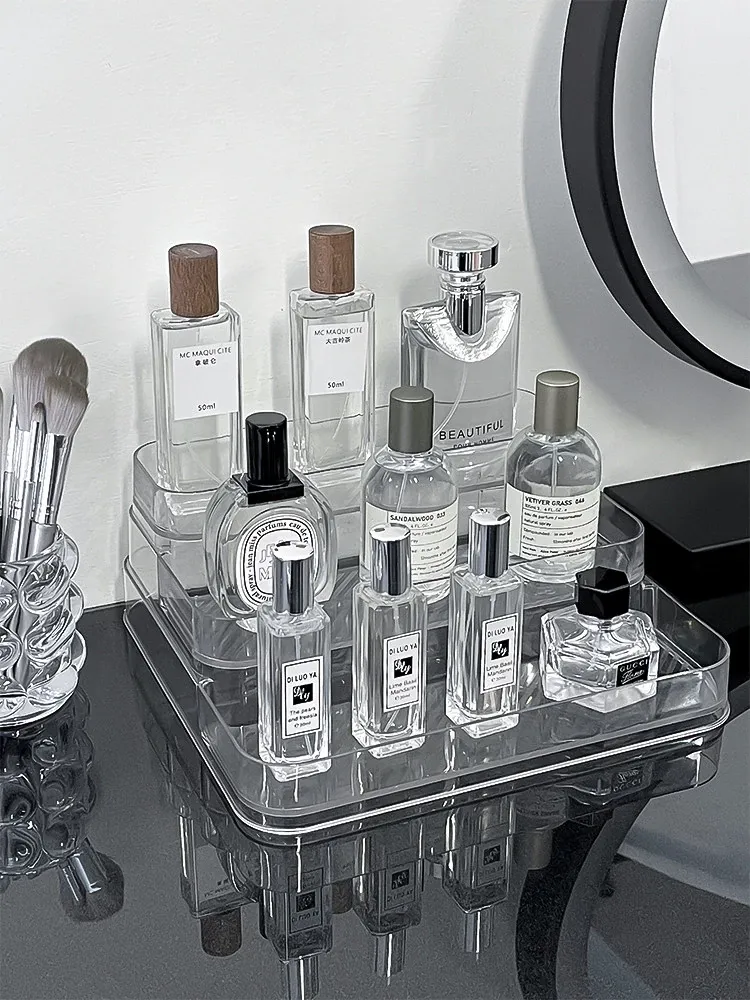 アクリル製化粧品収納ボックス - 透明感あふれる高級感!ドレッサーにぴったりな香水&スキンケアアイテムのディスプレイラック。整理整頓で美しさを引き立て、あなたのビューティーライフを格上げ!