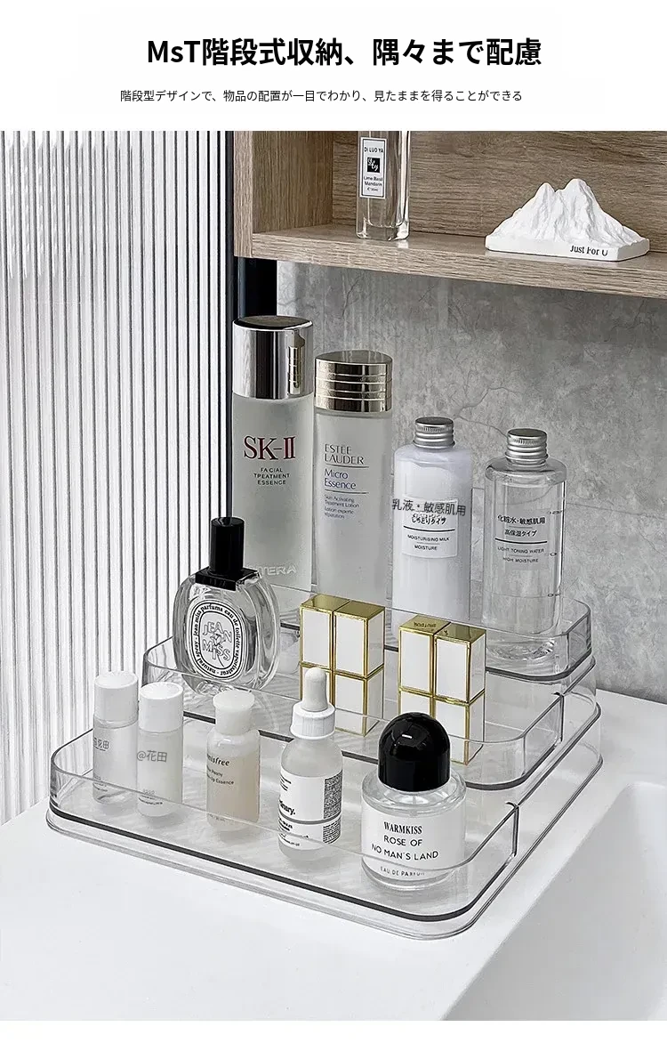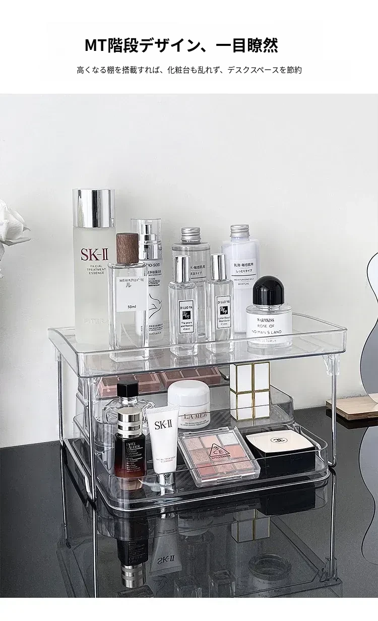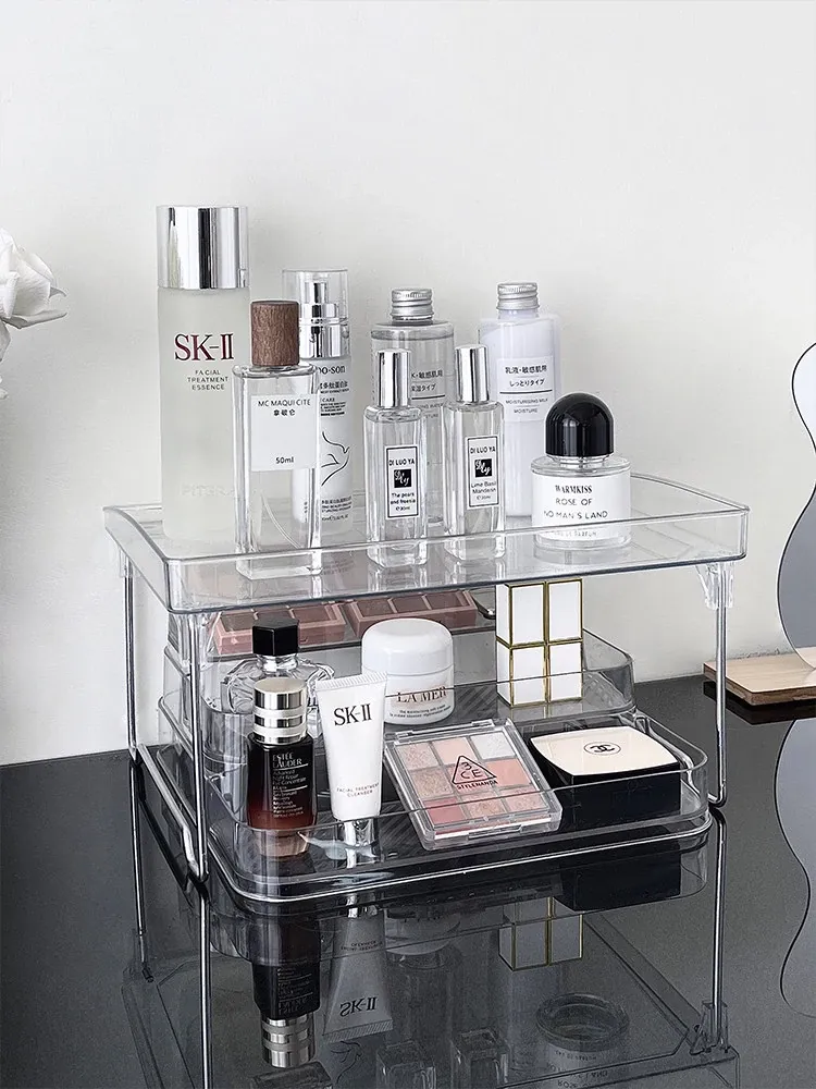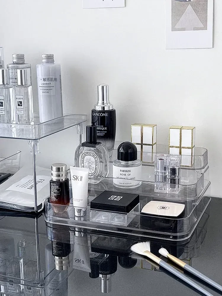 アクリル製化粧品収納ボックス - 透明感あふれる高級感!ドレッサーにぴったりな香水&スキンケアアイテムのディスプレイラック。整理整頓で美しさを引き立て、あなたのビューティーライフを格上げ!