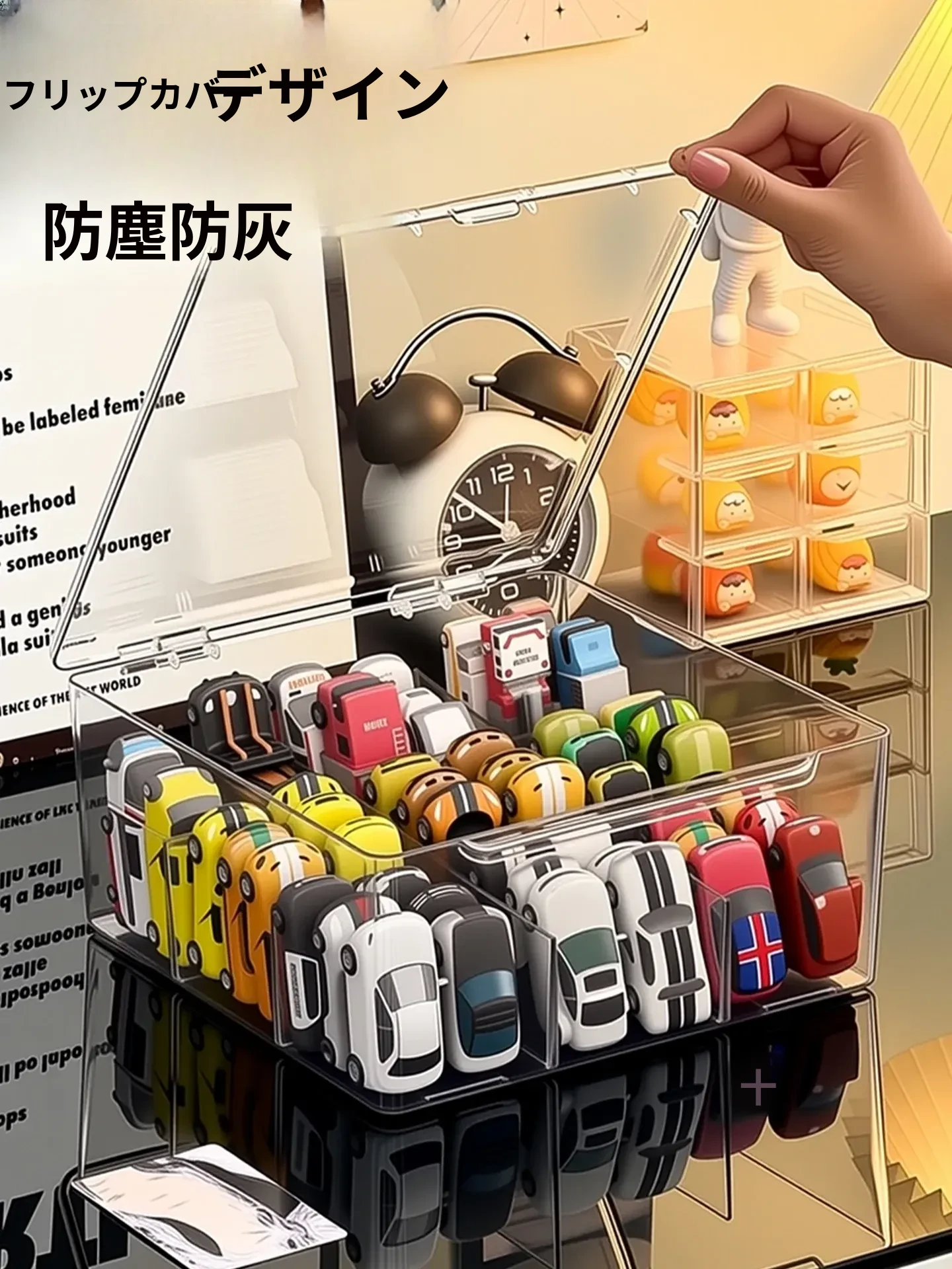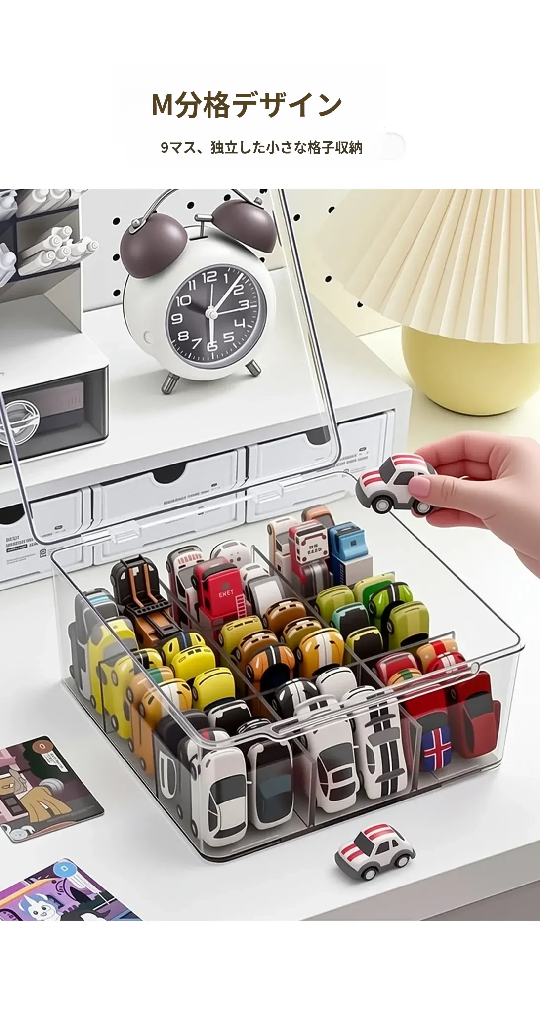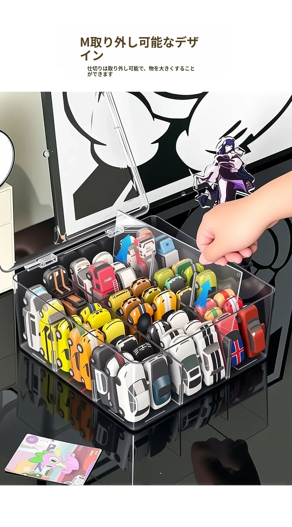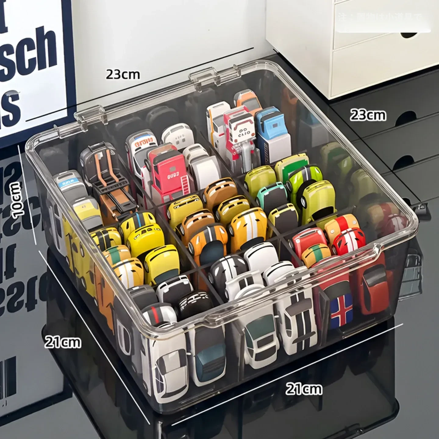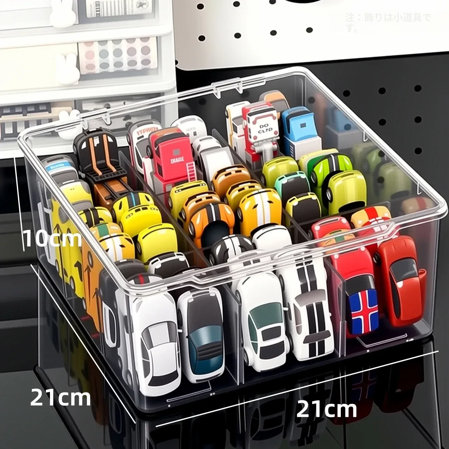 風火輪ミニカー収納ボックス - アクリル製透明おもちゃ車モデル用仕切り整理ボックス&カードディスプレイラックで、あなたのコレクションを美しく保管!