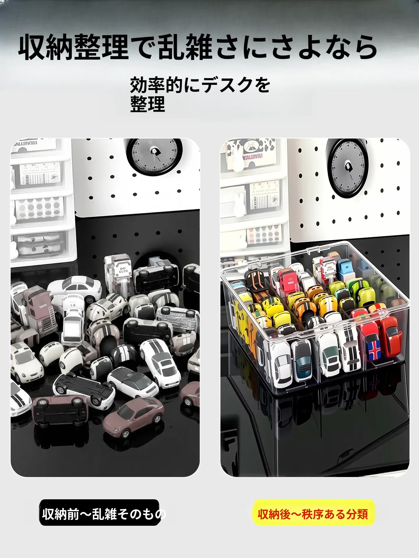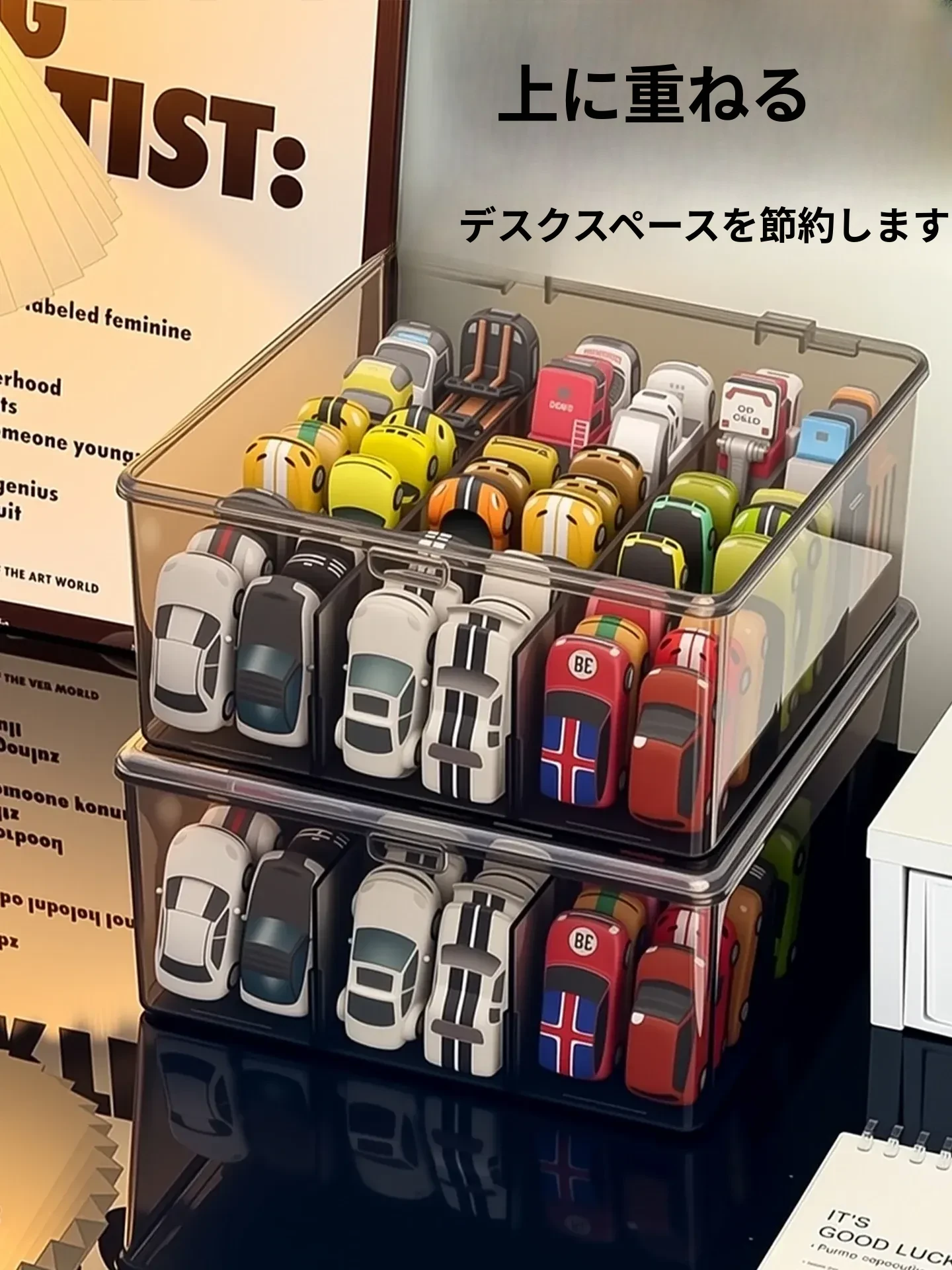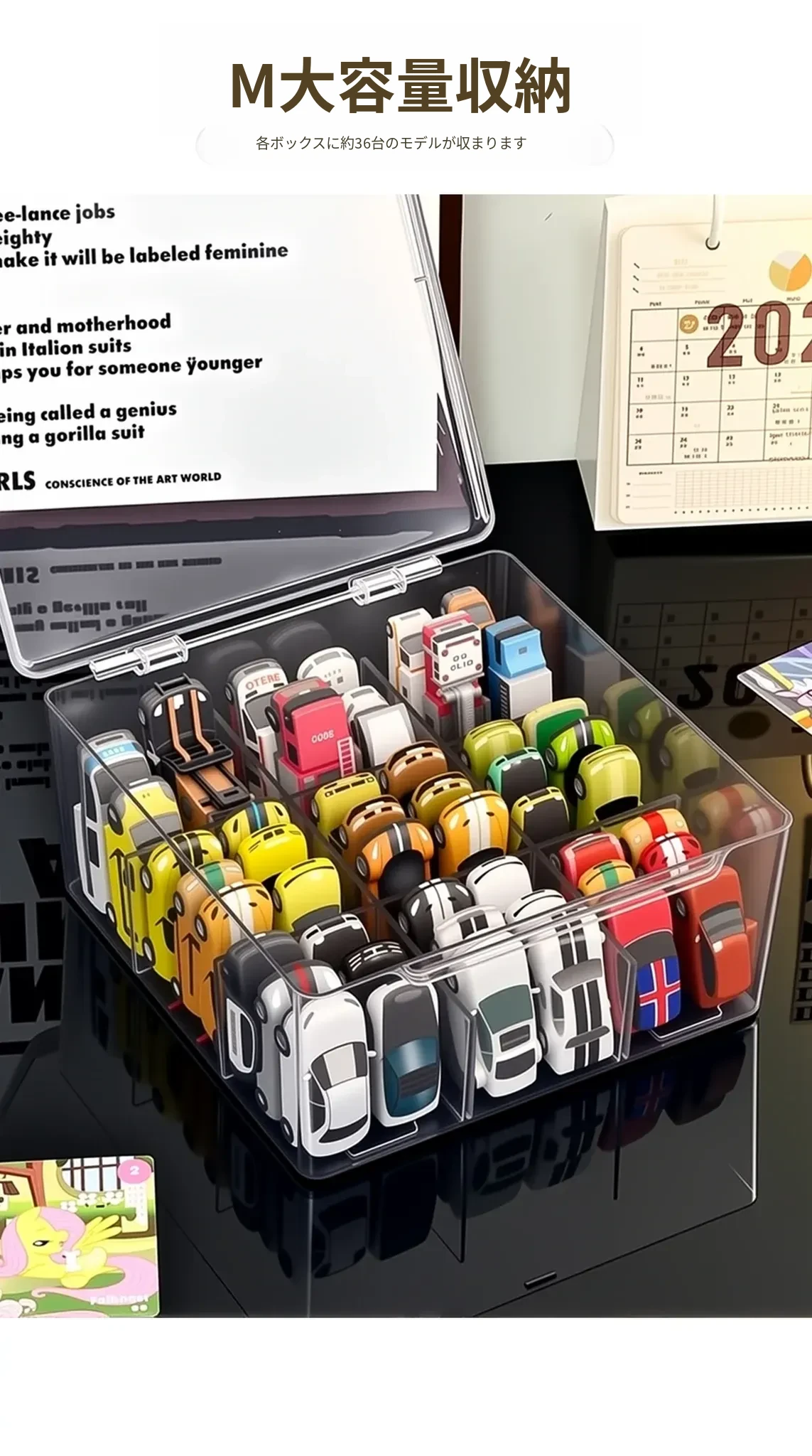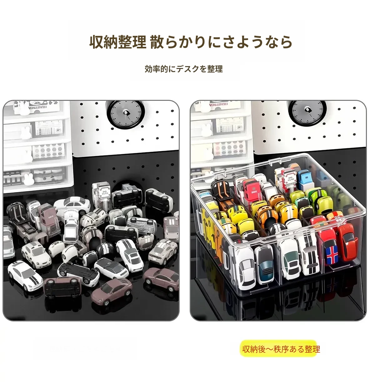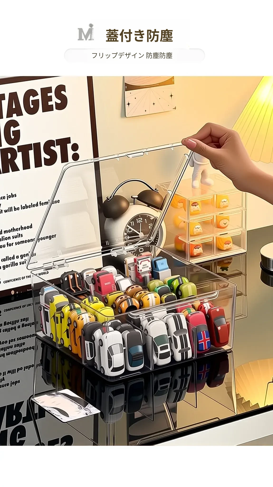 風火輪ミニカー収納ボックス - アクリル製透明おもちゃ車モデル用仕切り整理ボックス&カードディスプレイラックで、あなたのコレクションを美しく保管!