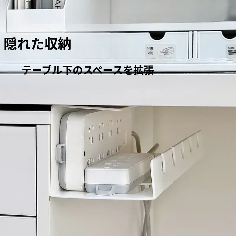 床下で使える理線器!オフィスや家庭に最適なケーブル整理ボックス。ネジ不要で簡単取り付け、スッキリとした配線を実現。コンセントやタップの収納もバッチリ。快適な作業環境を手に入れましょう!