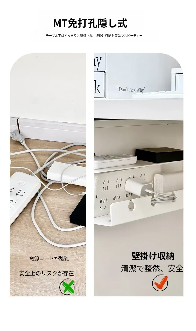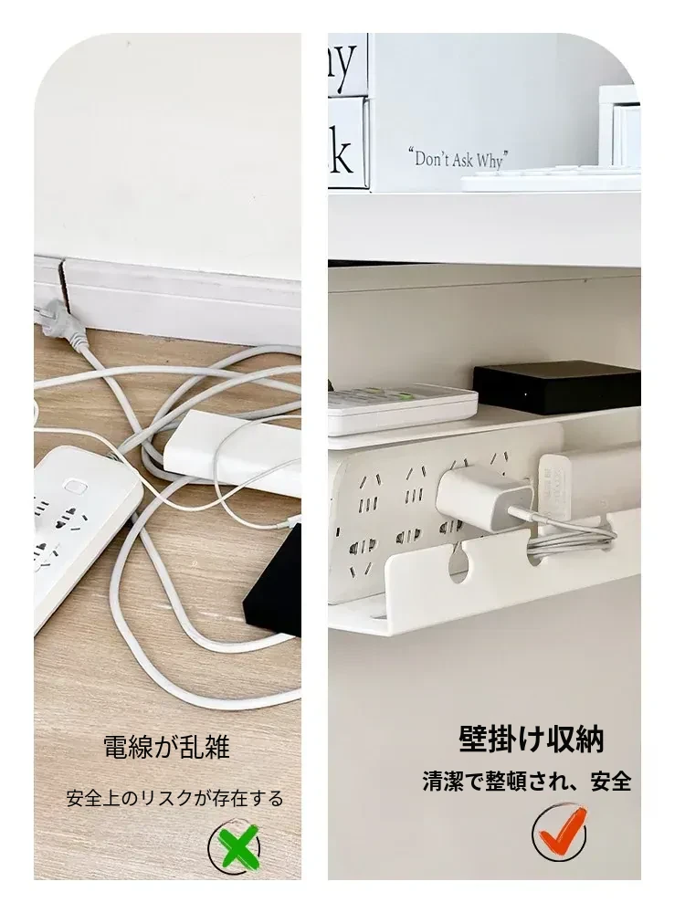 デスク下配線整理ボックス - 取り付け不要で簡単に配線をスッキリ!オフィスや自宅での電源タップやケーブルを美しく収納し、作業スペースを快適に保つ理想的なアイテムです。