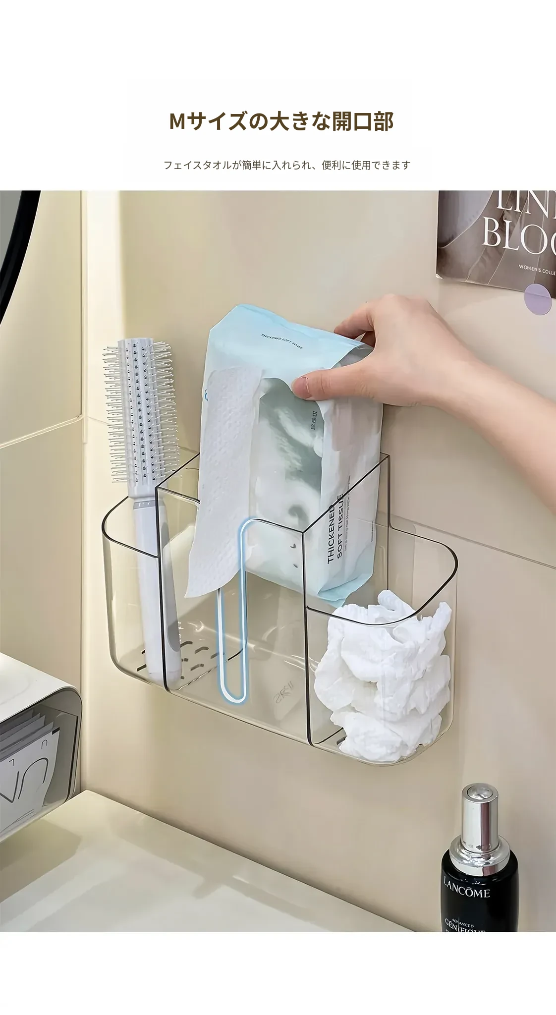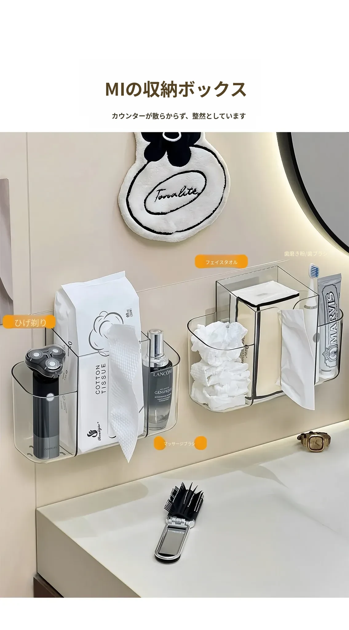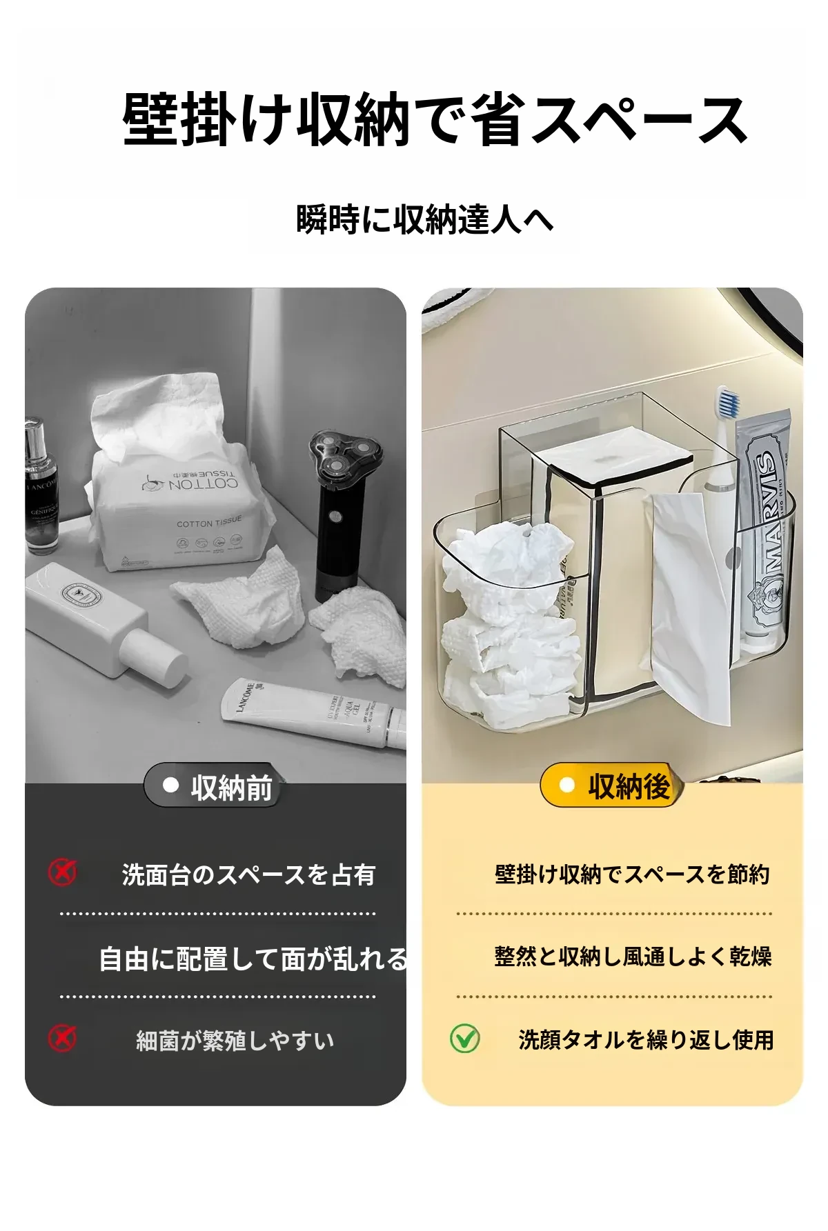 壁掛け洗顔タオル収納ボックス|再利用可能な廃棄フェイスタオルケース|2in1ティッシュボックス&収納ラック|衛生的でスタイリッシュなバスルームに最適!