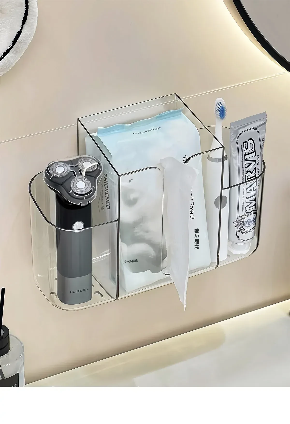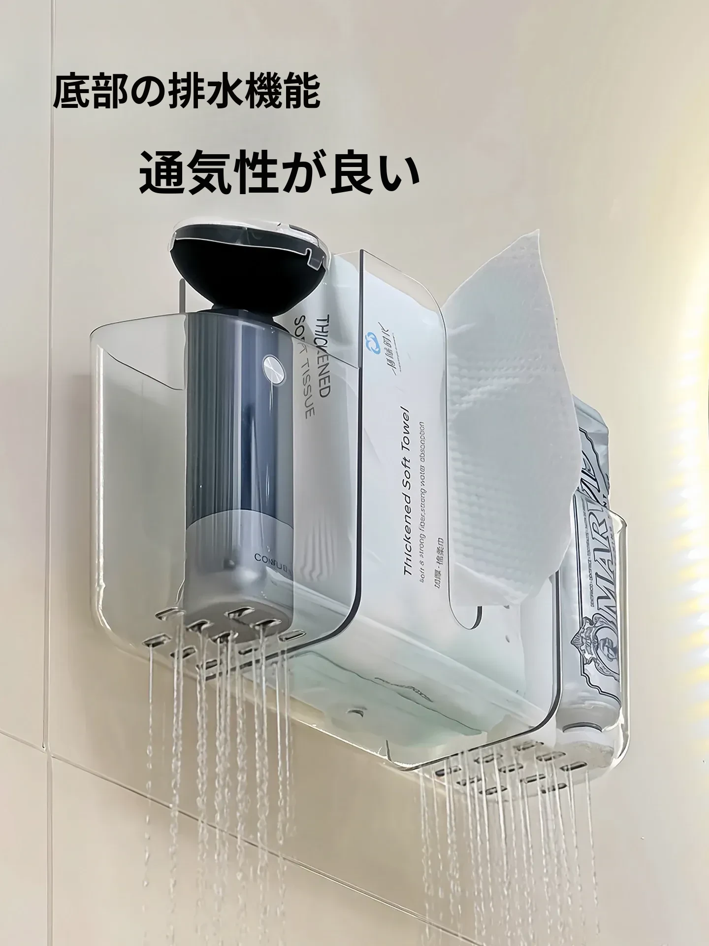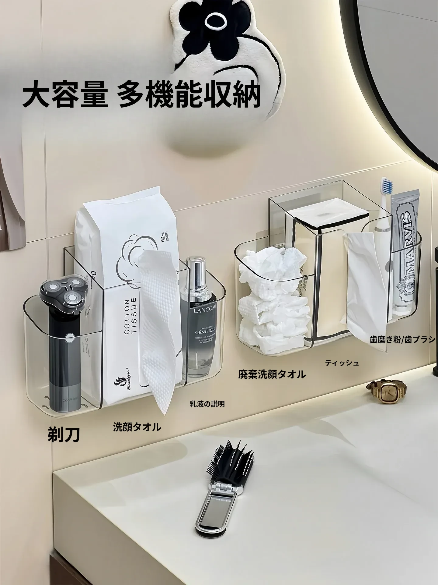 壁掛け洗顔タオル収納ボックス|再利用可能な廃棄フェイスタオルケース|2in1ティッシュボックス&収納ラック|衛生的でスタイリッシュなバスルームに最適!