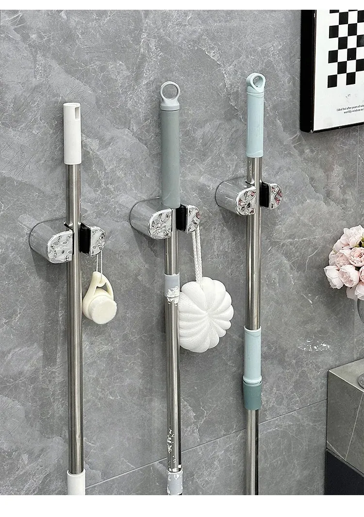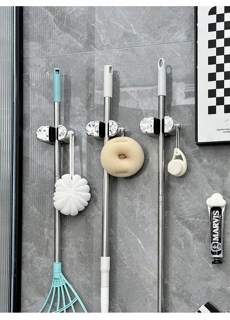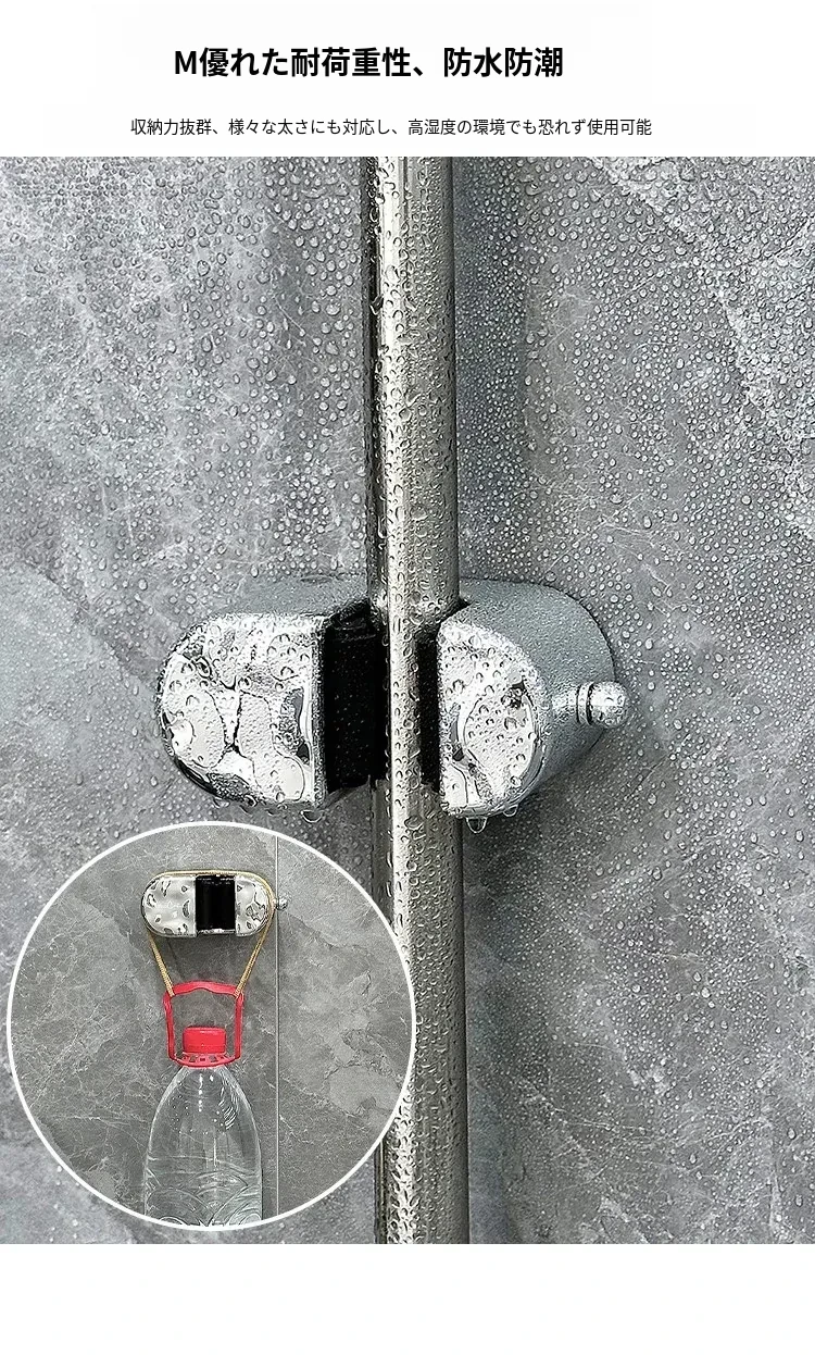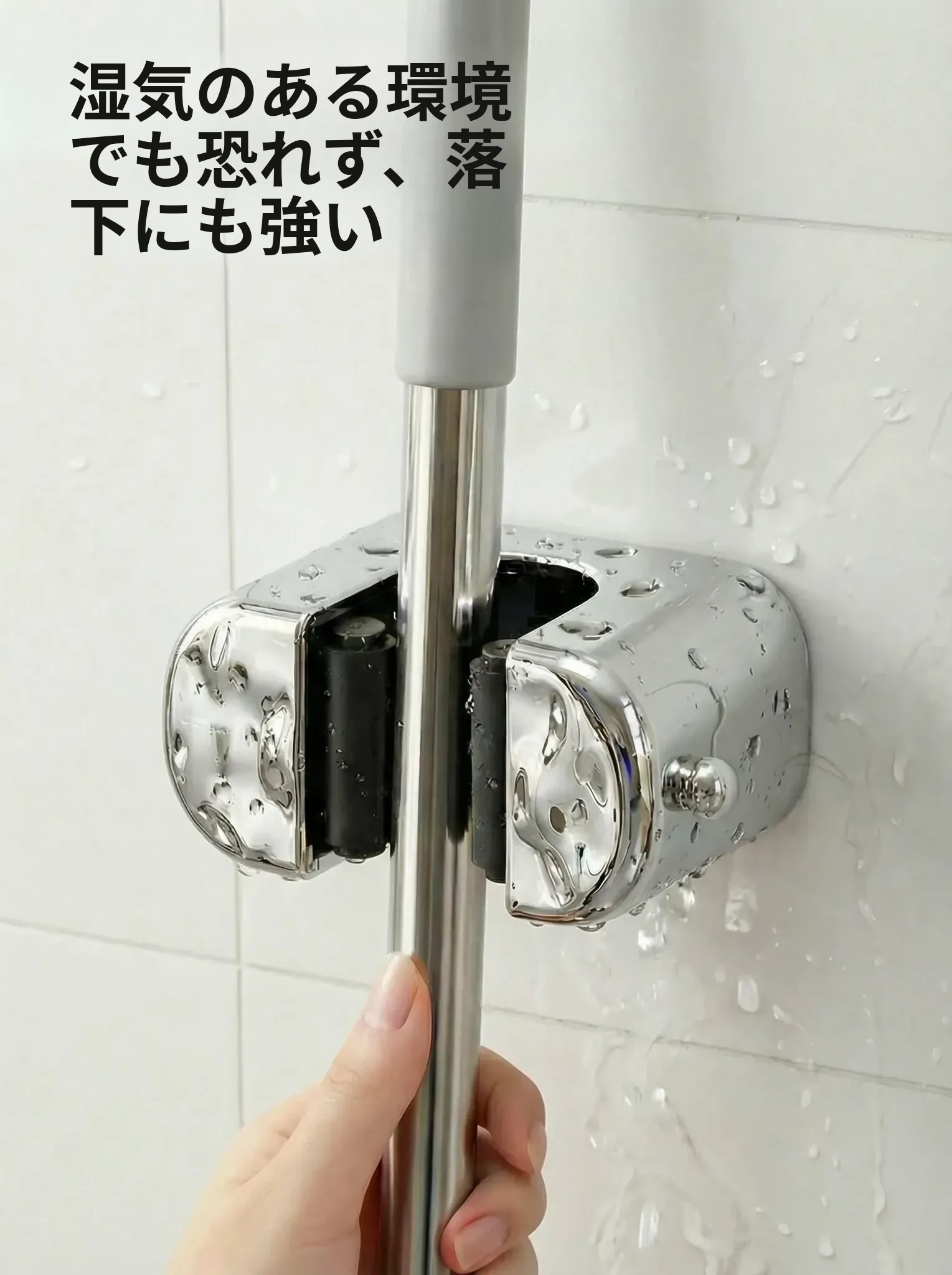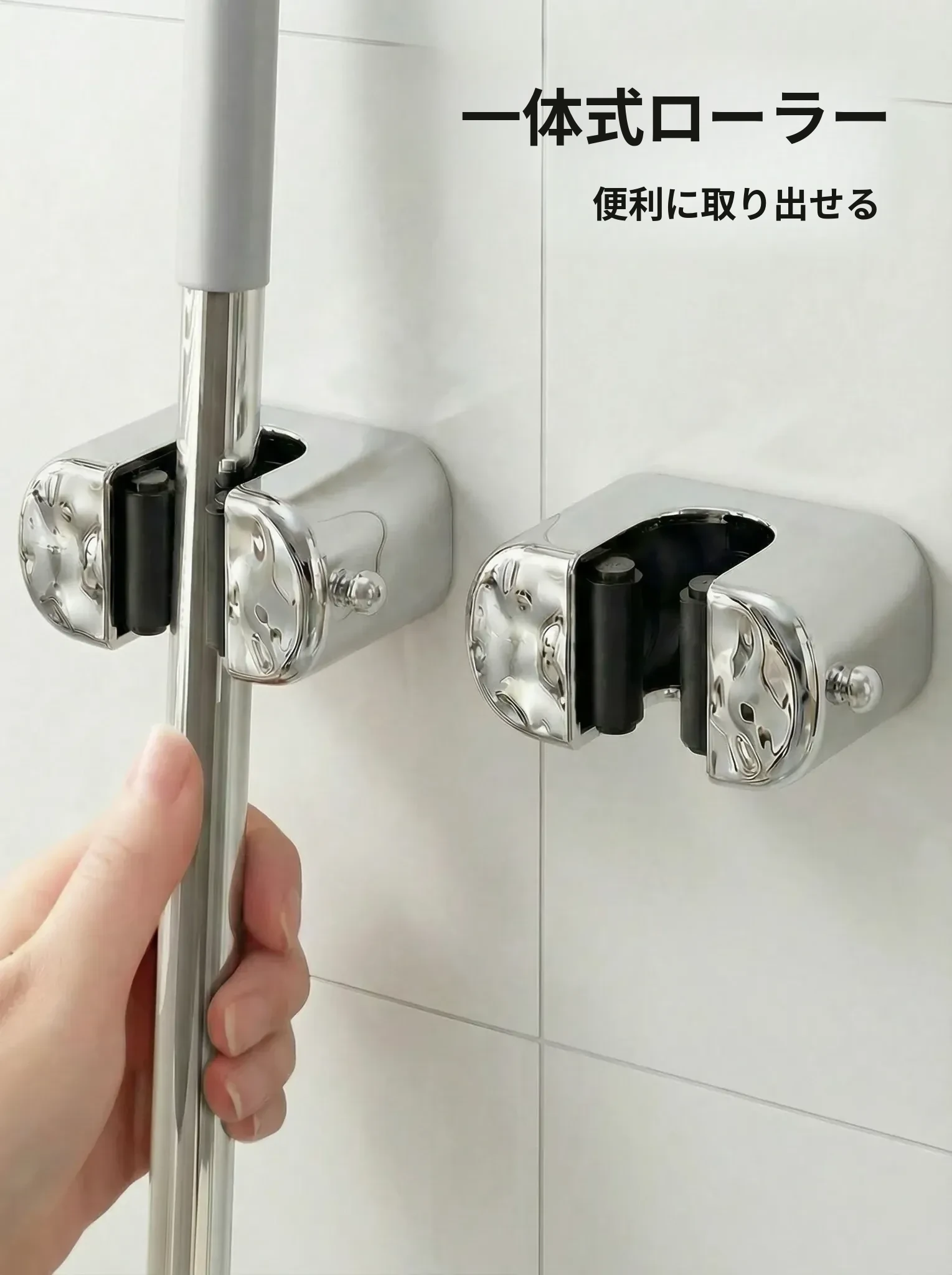 壁掛けモップクリップフック - 穴あけ不要で掃除道具をスマートに収納!トイレや洗面所の壁にぴったりの便利アイテムで、すっきりとした空間を実現します。