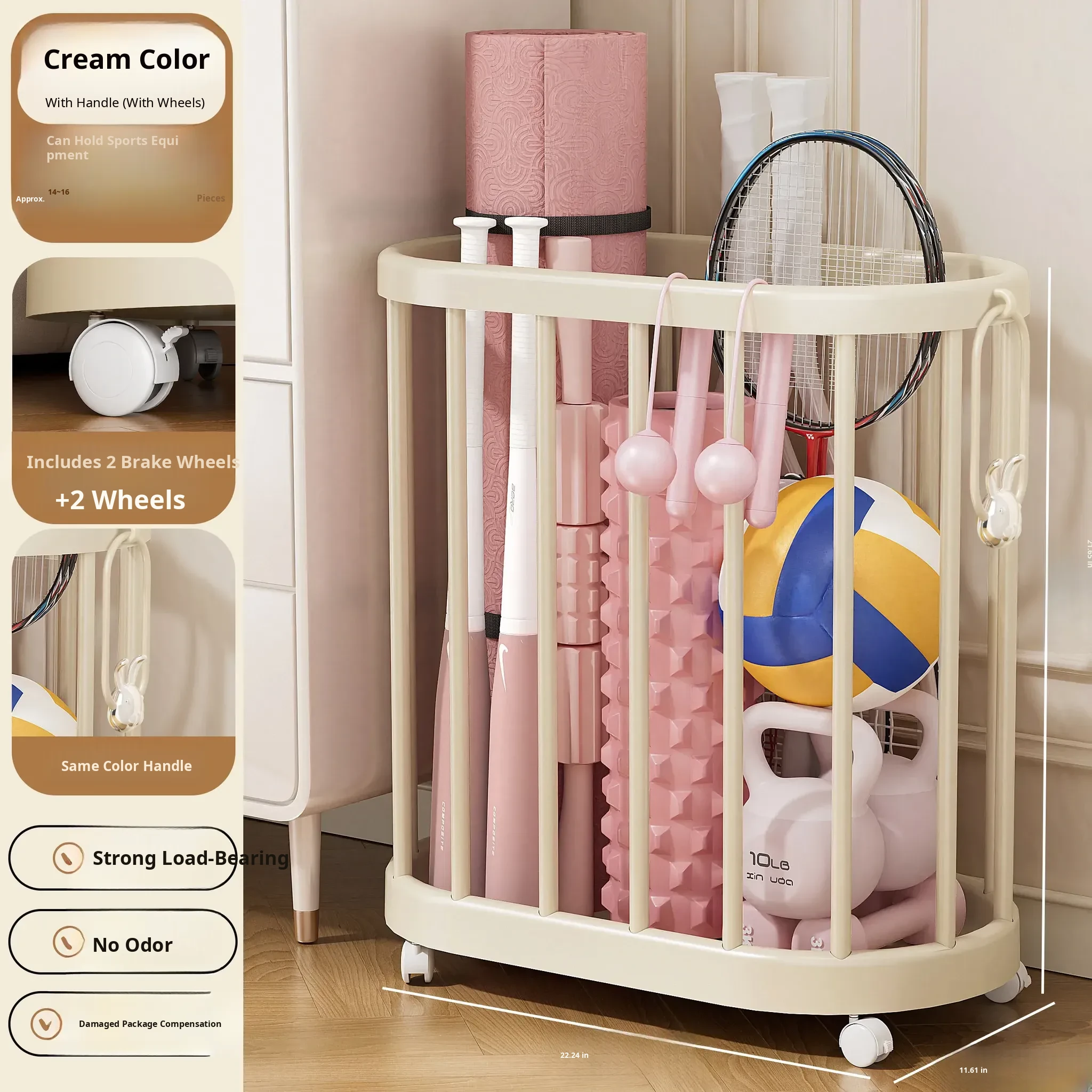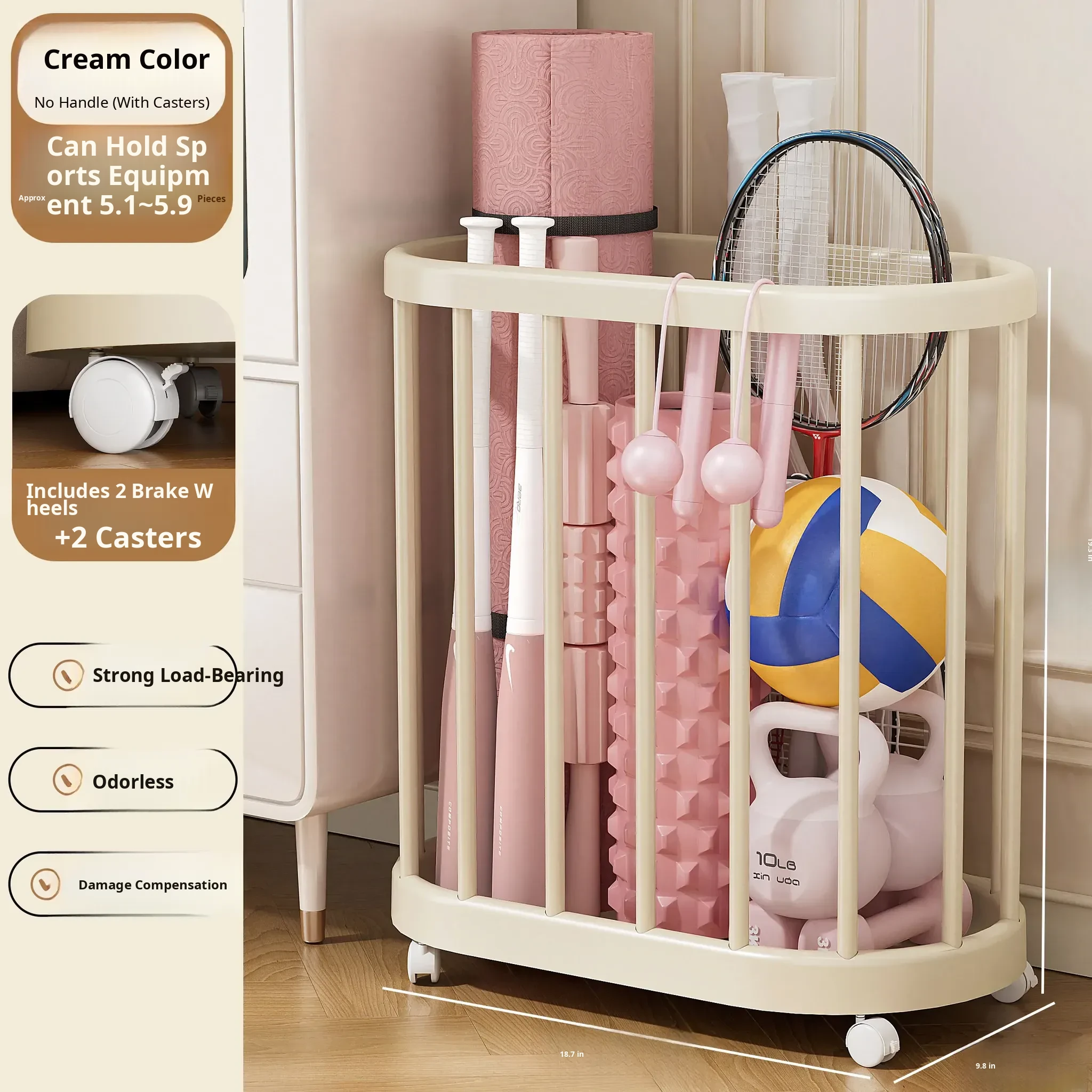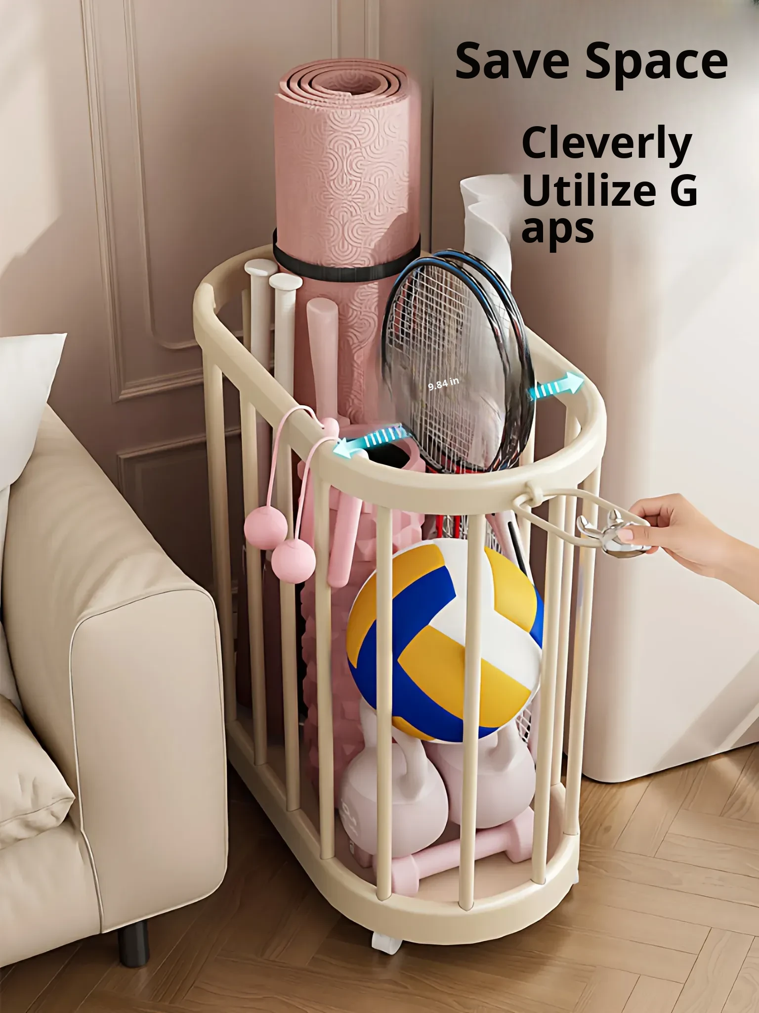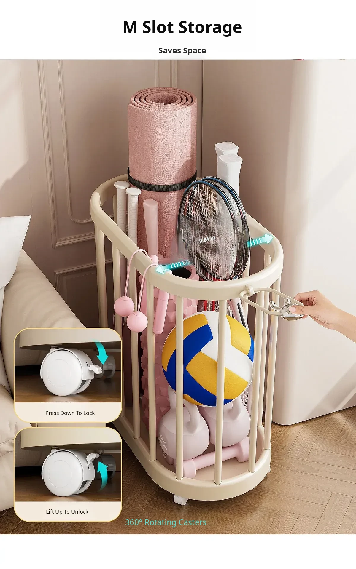 Yoga Mat Storage Basket - Home Fitness Equipment Organizer with Wheels for Dumbbells, Balls, and Rackets - Keep Your Workout Space Neat and Tidy!